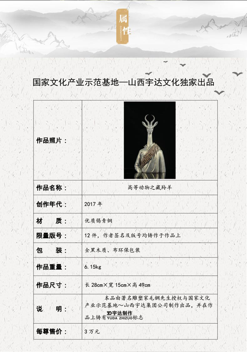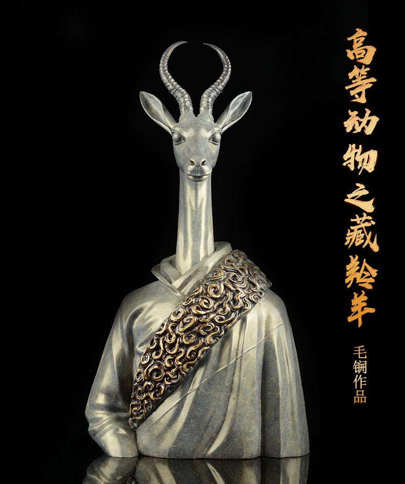宇达青铜摆件 毛锎作品《高等动物之藏羚羊》限量12件 艺术摆件 高49cm