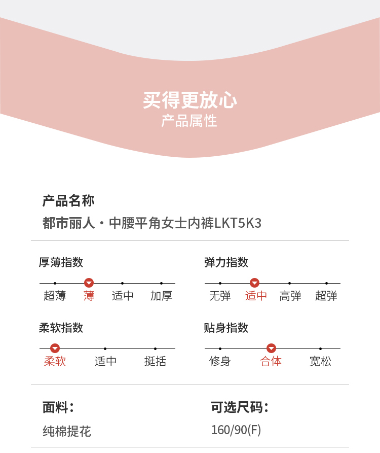 都市丽人内裤舒肤棉平角裤纯棉提花女士内裤LKT5K3