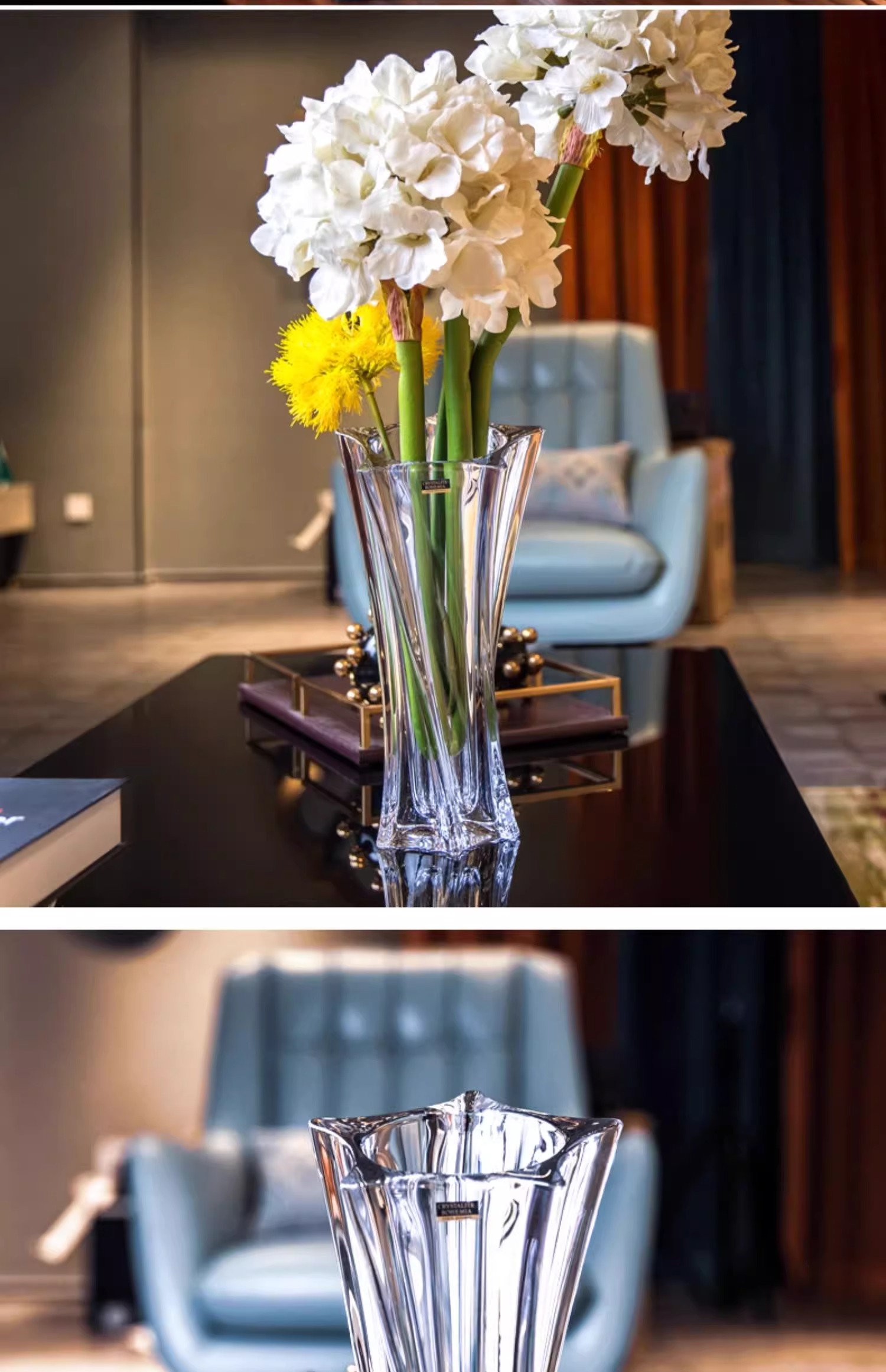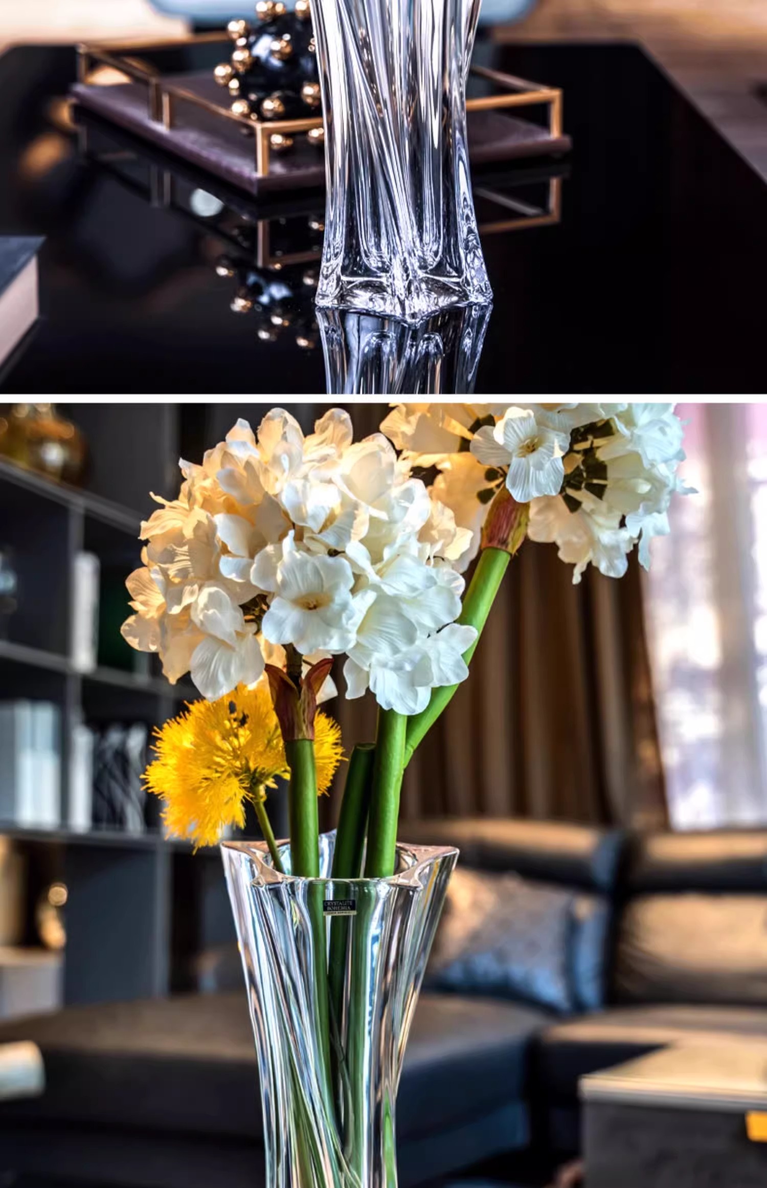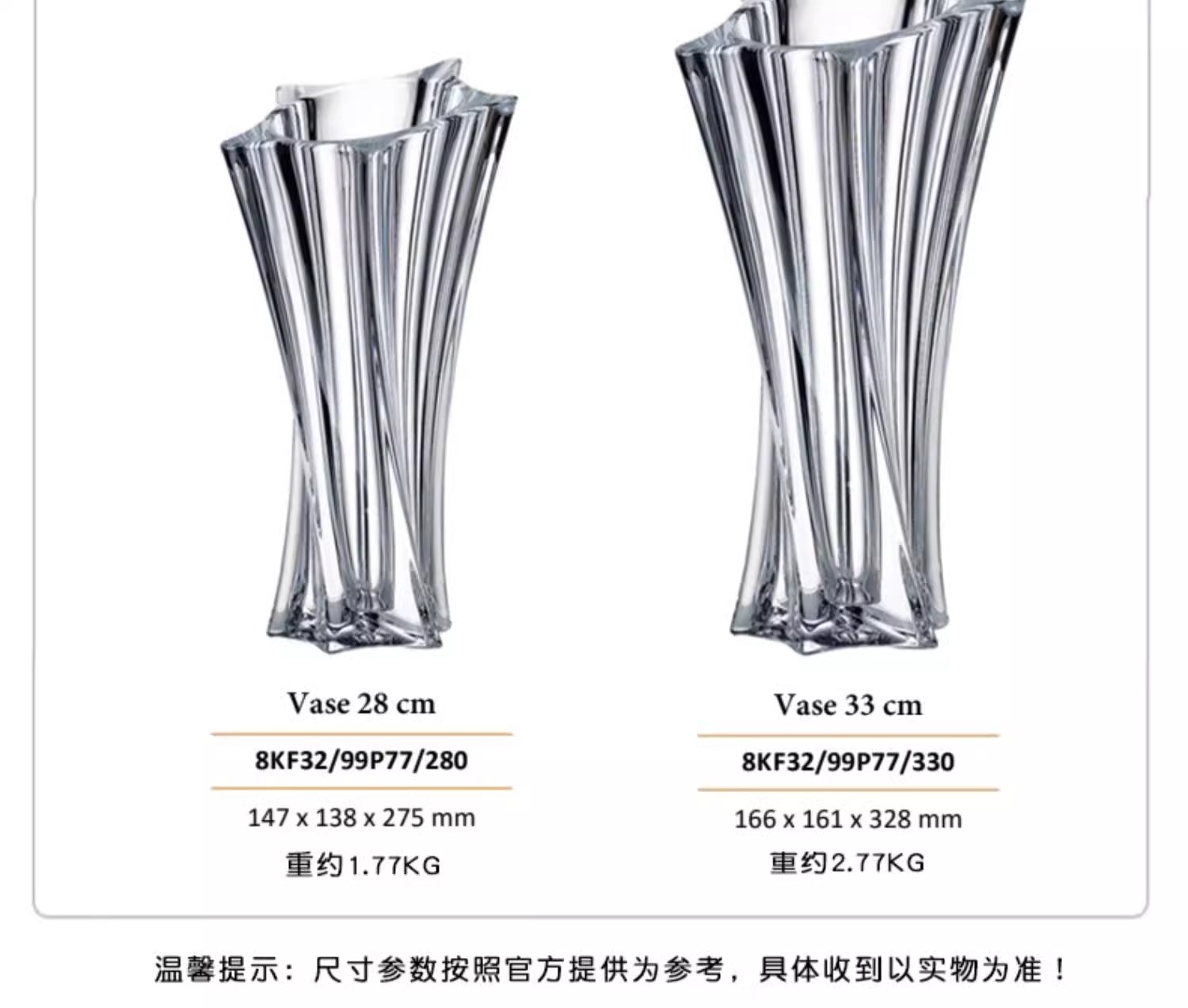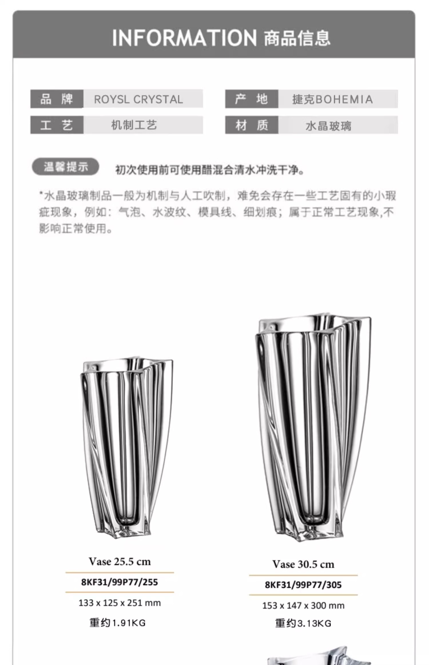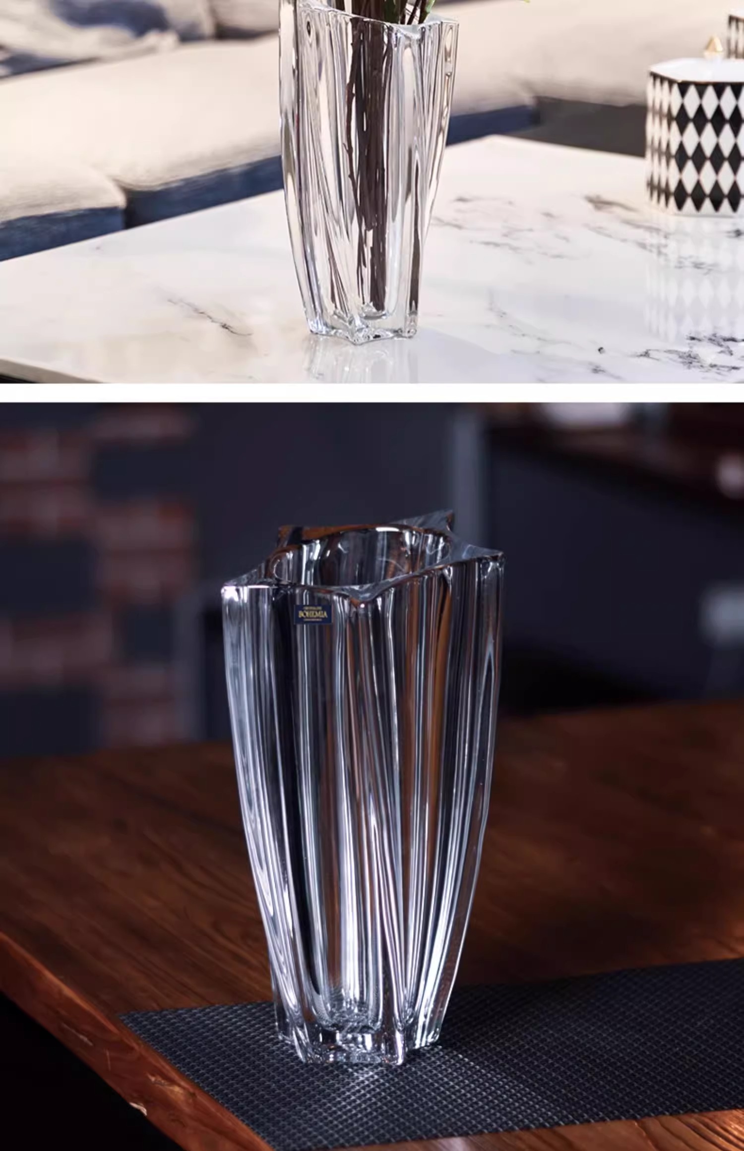 捷克进口BOHEMIA水晶玻璃简约花瓶欧式客厅插花花器北欧摆件花瓶风车花瓶30cm