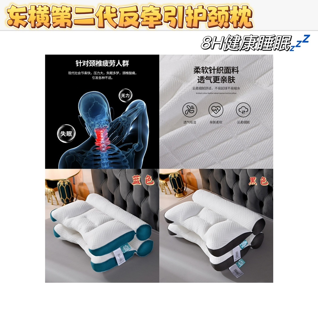 💥大爆款回货!现货中!! 日本东横第二代反牵引枕护颈枕是一款专为舒缓颈部疲劳、改善颈椎健康而设计的创新产品,结合人体工程学设计,为用户提供了全面的颈部支撑和舒适的使用体验。 1️⃣人体工程学设计:枕头形状经过精心设计,符合人体颈部曲线,为颈椎和头部提供均匀的支撑,减少不适感。 2️⃣透气性:针织面料具有良好的透气性,有效减少出汗和不适感,让您保持干爽的睡眠环境。 3️⃣易于清洁:护颈枕材料耐污渍,易于清洁,可手洗或机洗,保持枕头的清洁和卫生。形状:组合多形状。 功能:护颈,助眠,支撑是否可水洗。 面料:针织网眼布