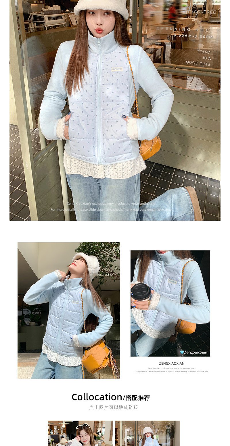 <曾小咸推荐>现货秒杀 !微信超特价!韩系立领波点棉服外套 日常219.99 立减90 秒杀129.99!!