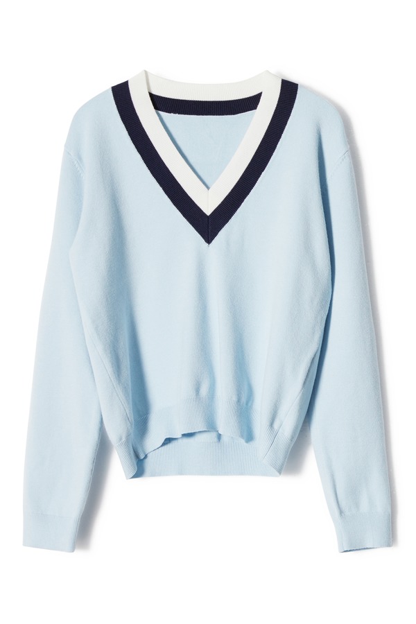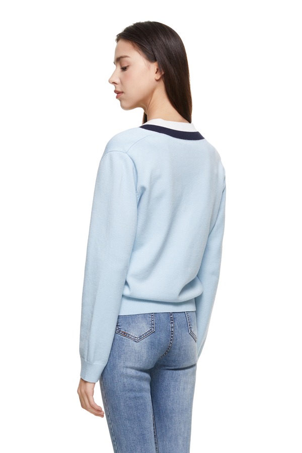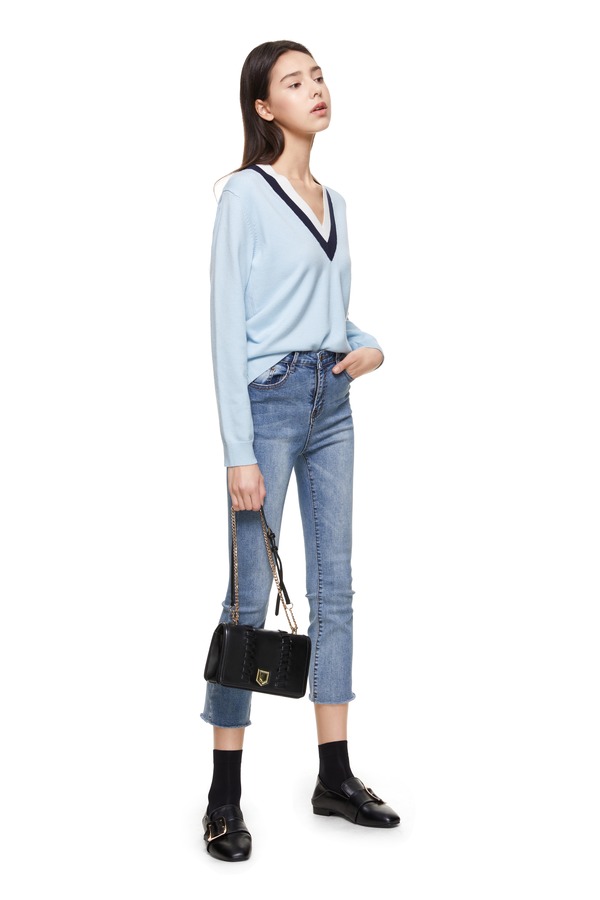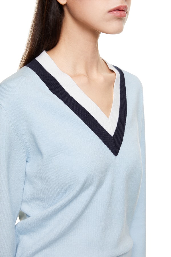 ELLA JADE 拼色V字条纹蓝色毛衫 8877