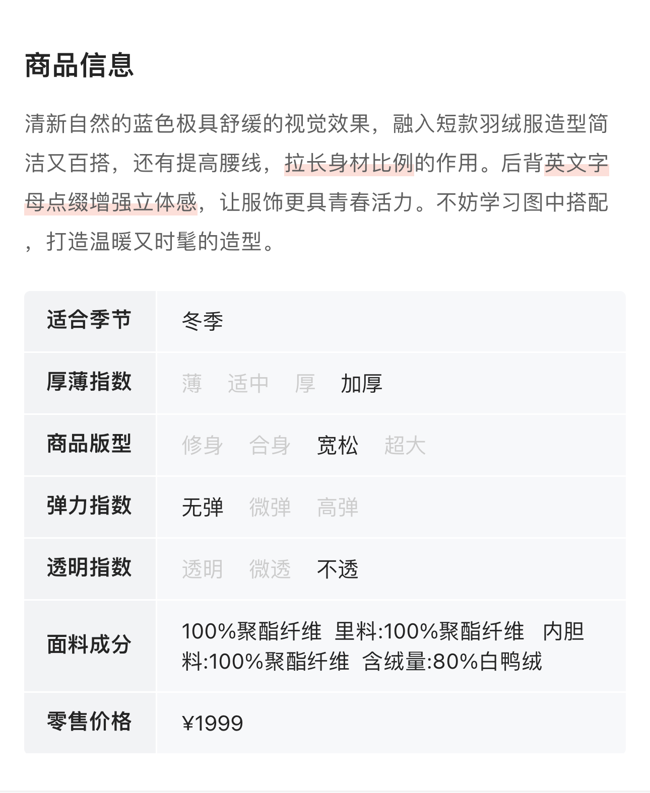ELLA JADE 蓝色短款羽绒服 4192