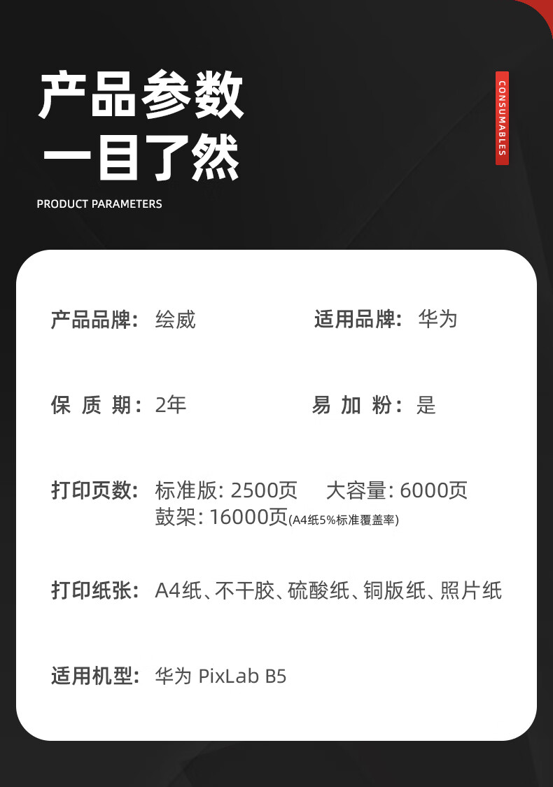 绘威B5易加粉粉盒 适用 B5打印机硒鼓PixLab B5墨盒 B5激光打印机 墨粉盒