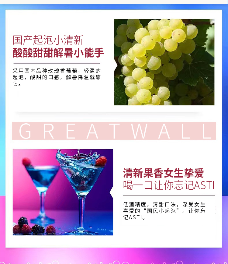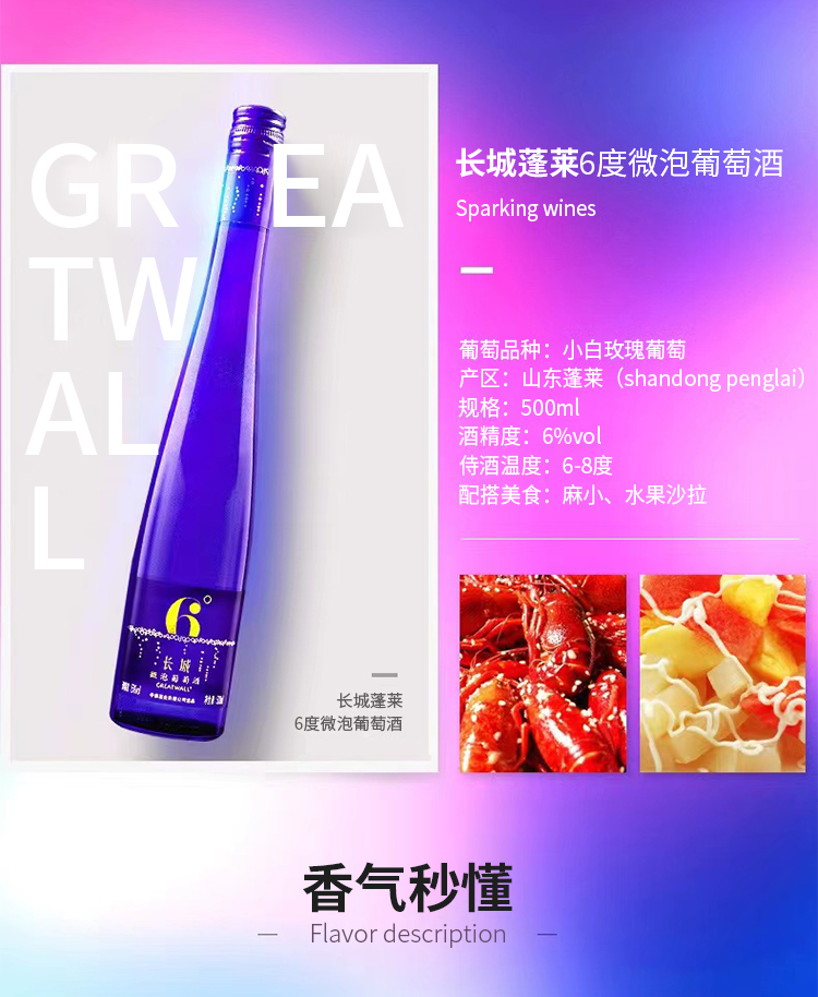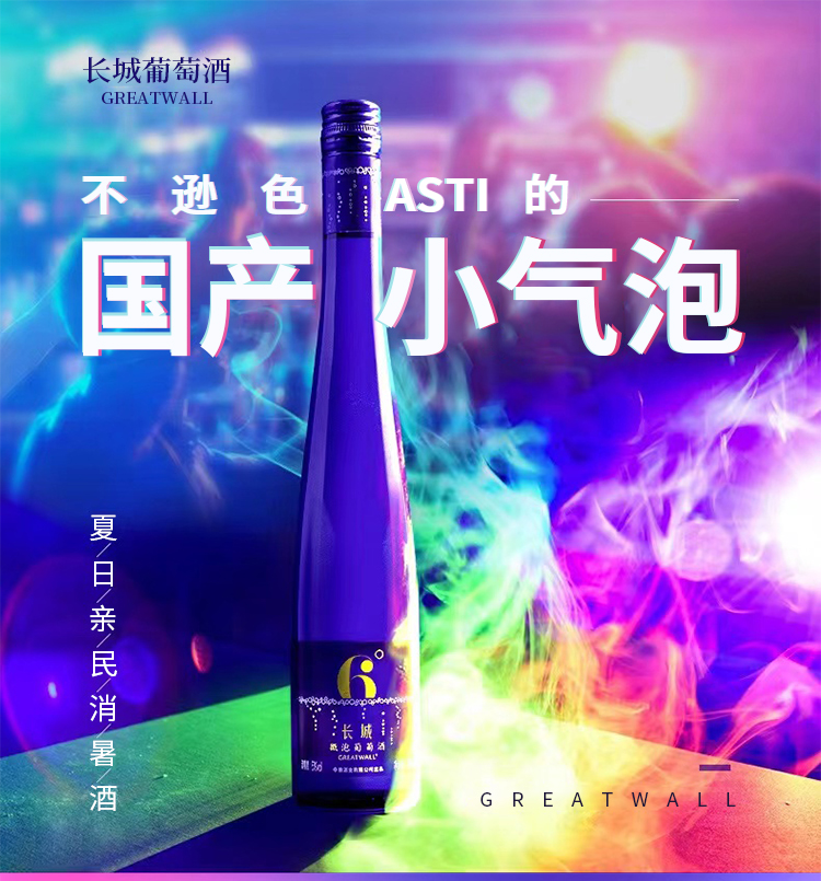 长城6度微泡葡萄酒(蓝瓶)整箱 500ml*12支(裸瓶)