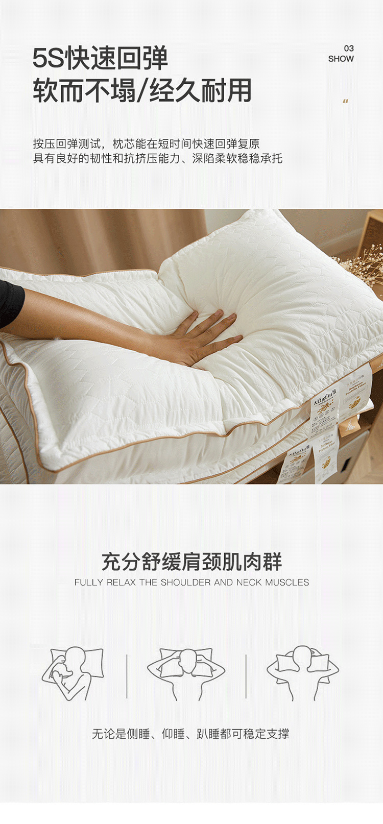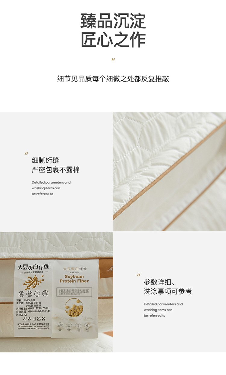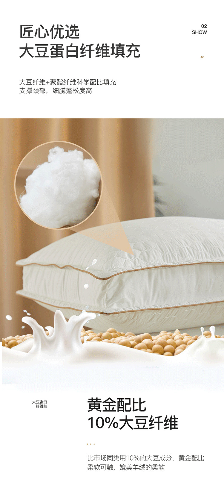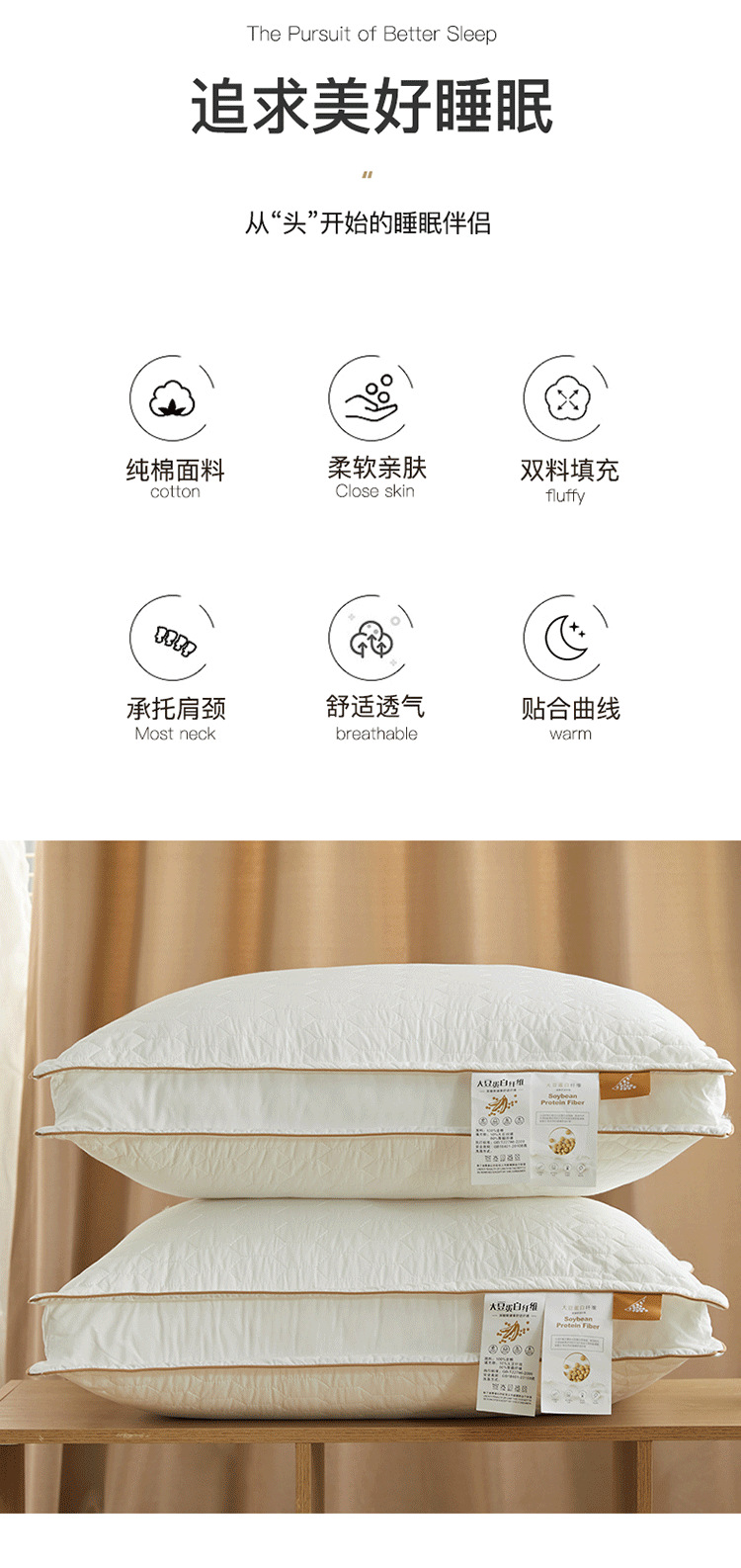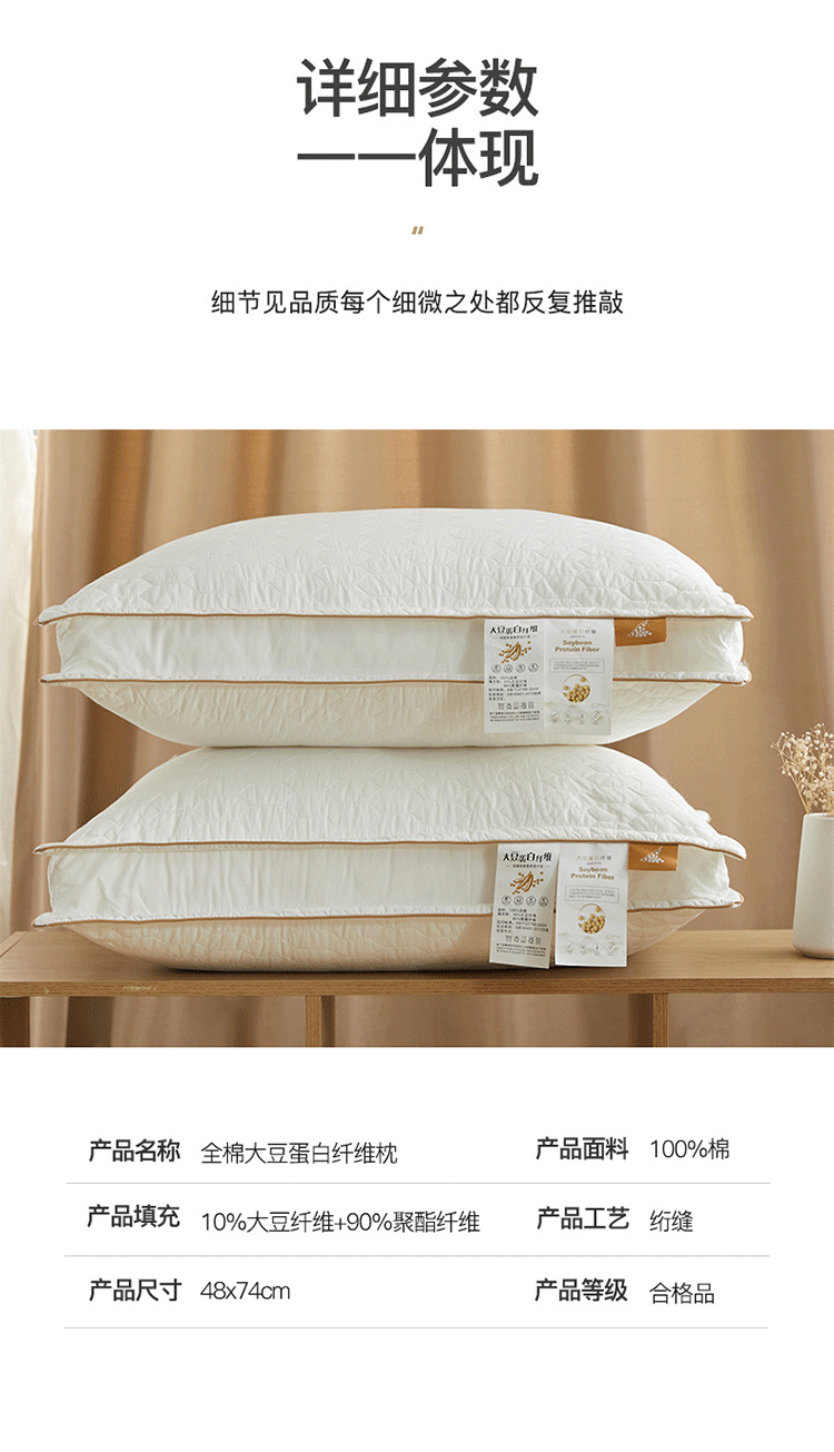 自然醒大豆蛋白纤维枕48*74cm全棉抗菌枕芯保护颈椎辅助睡眠枕头SXM