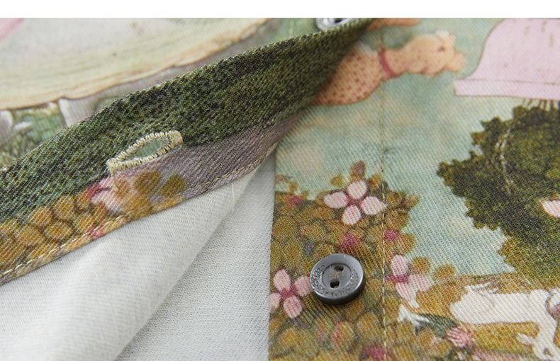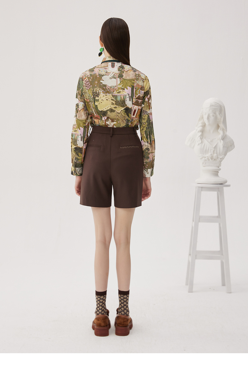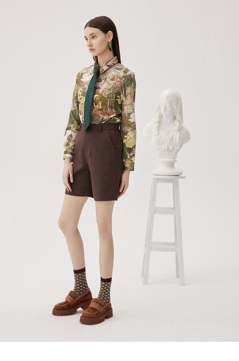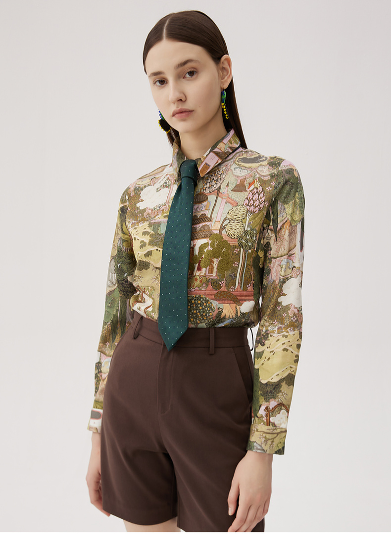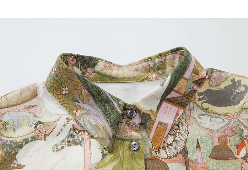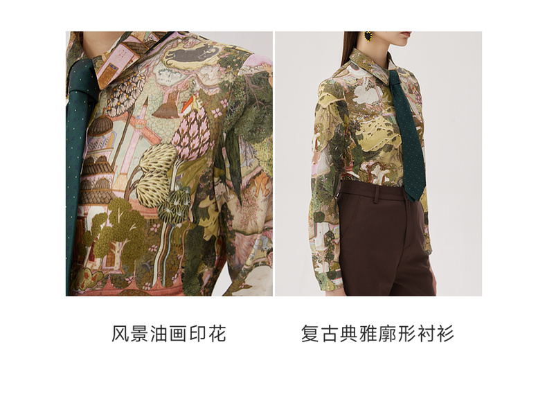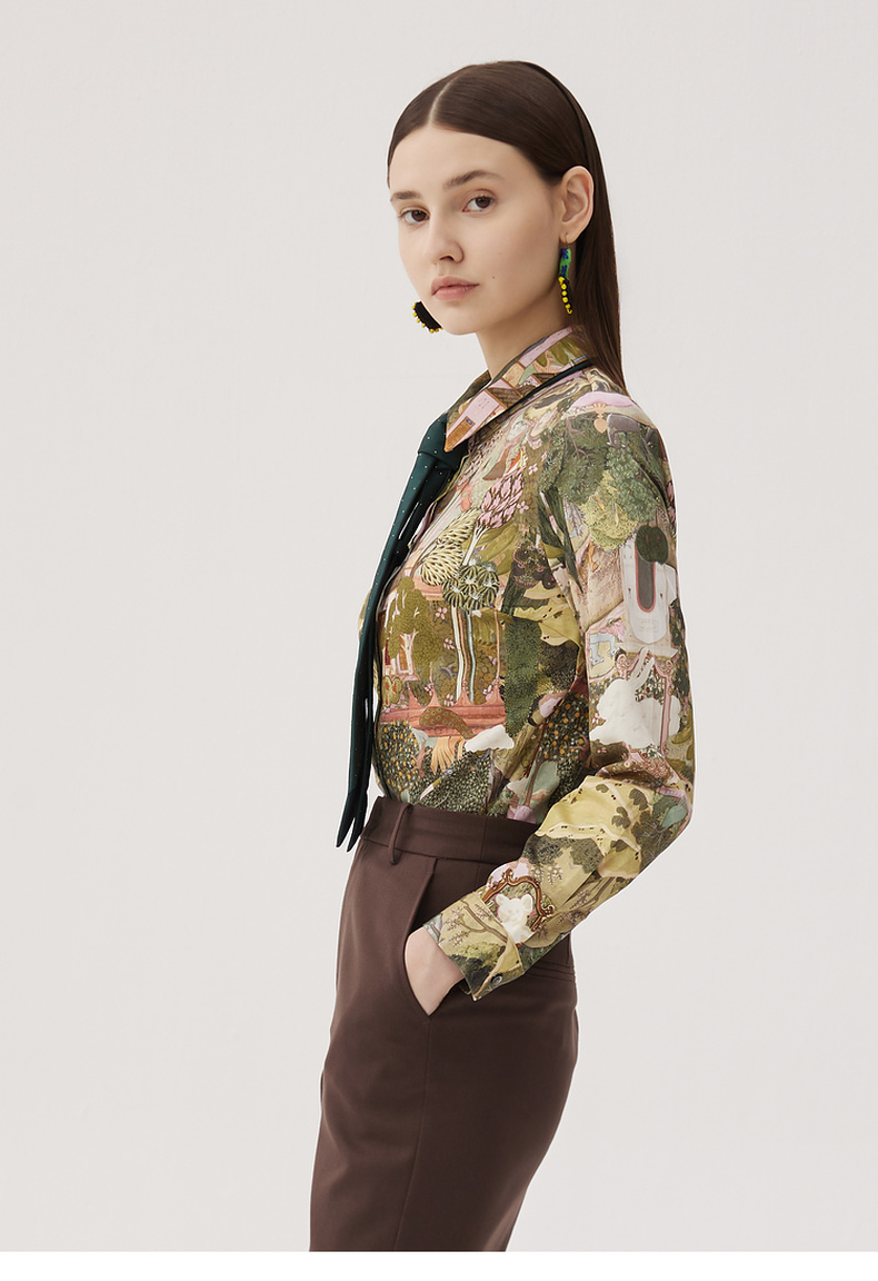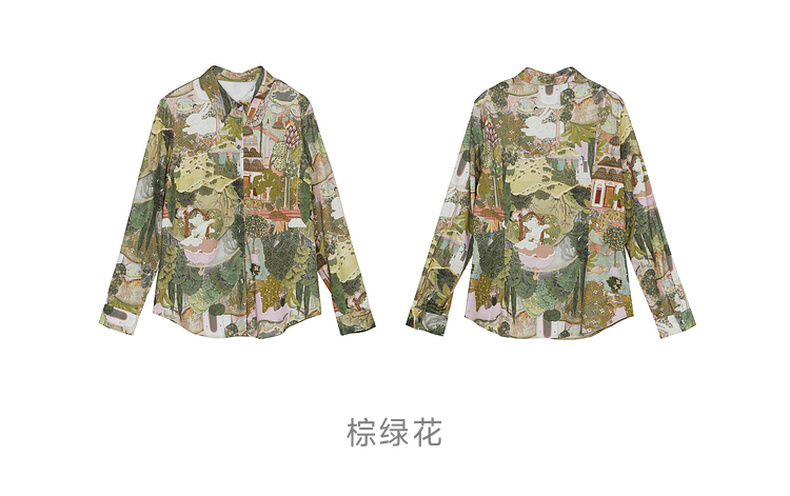 谜底花色衬衫长袖女2024秋季款复古风印花合体亲肤衬衣247MC5060