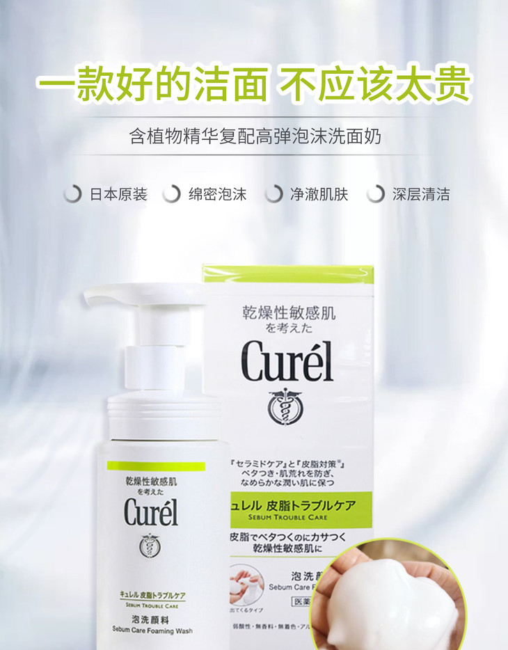 日本直邮 珂润控油保湿洁颜泡沫150ml洗面奶清洁(264336)