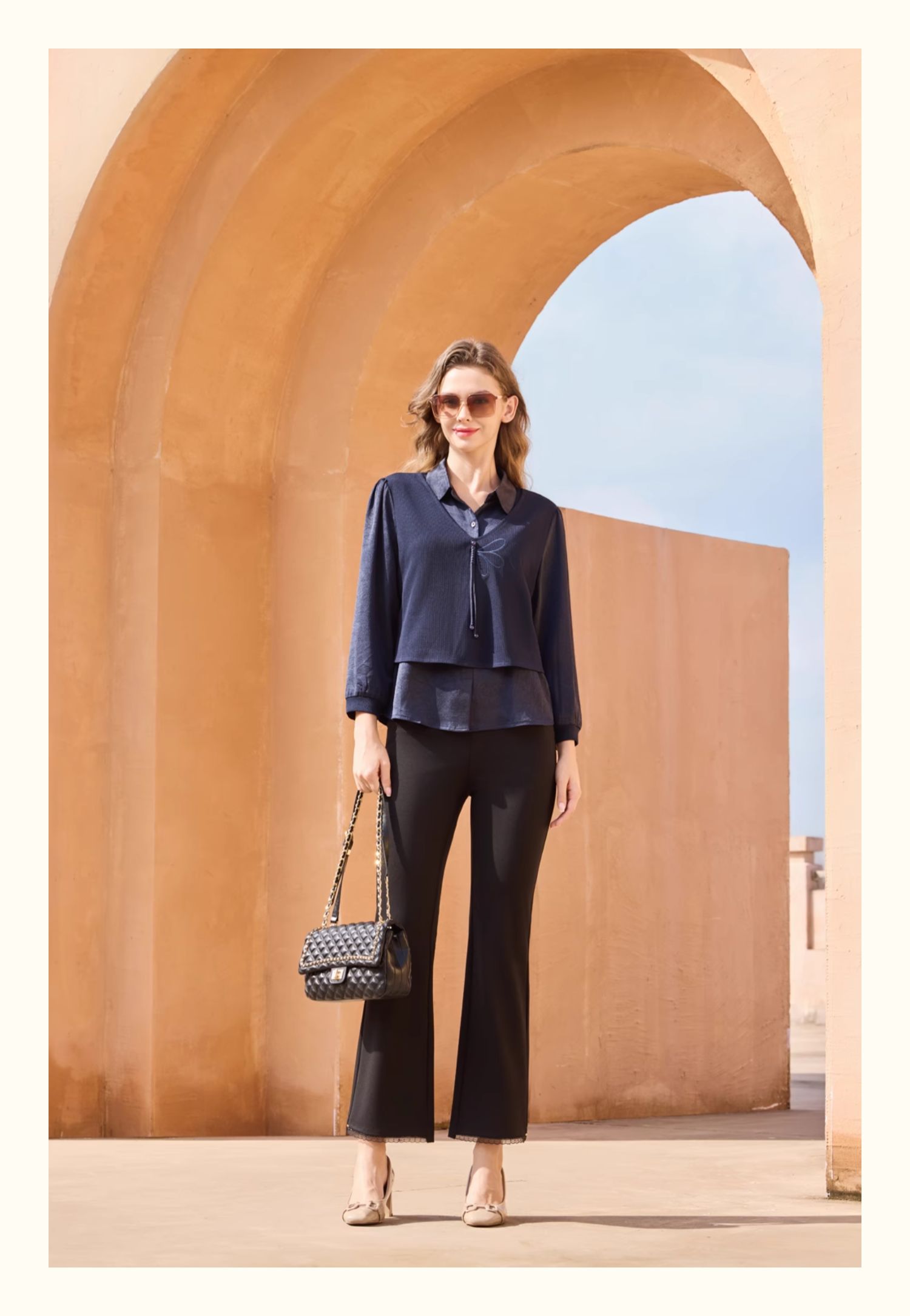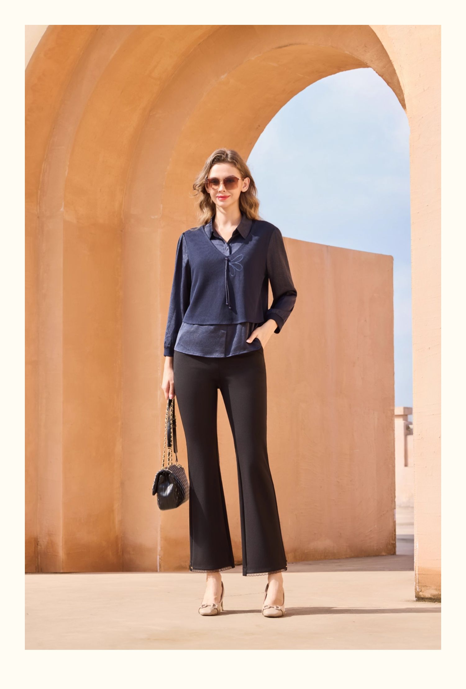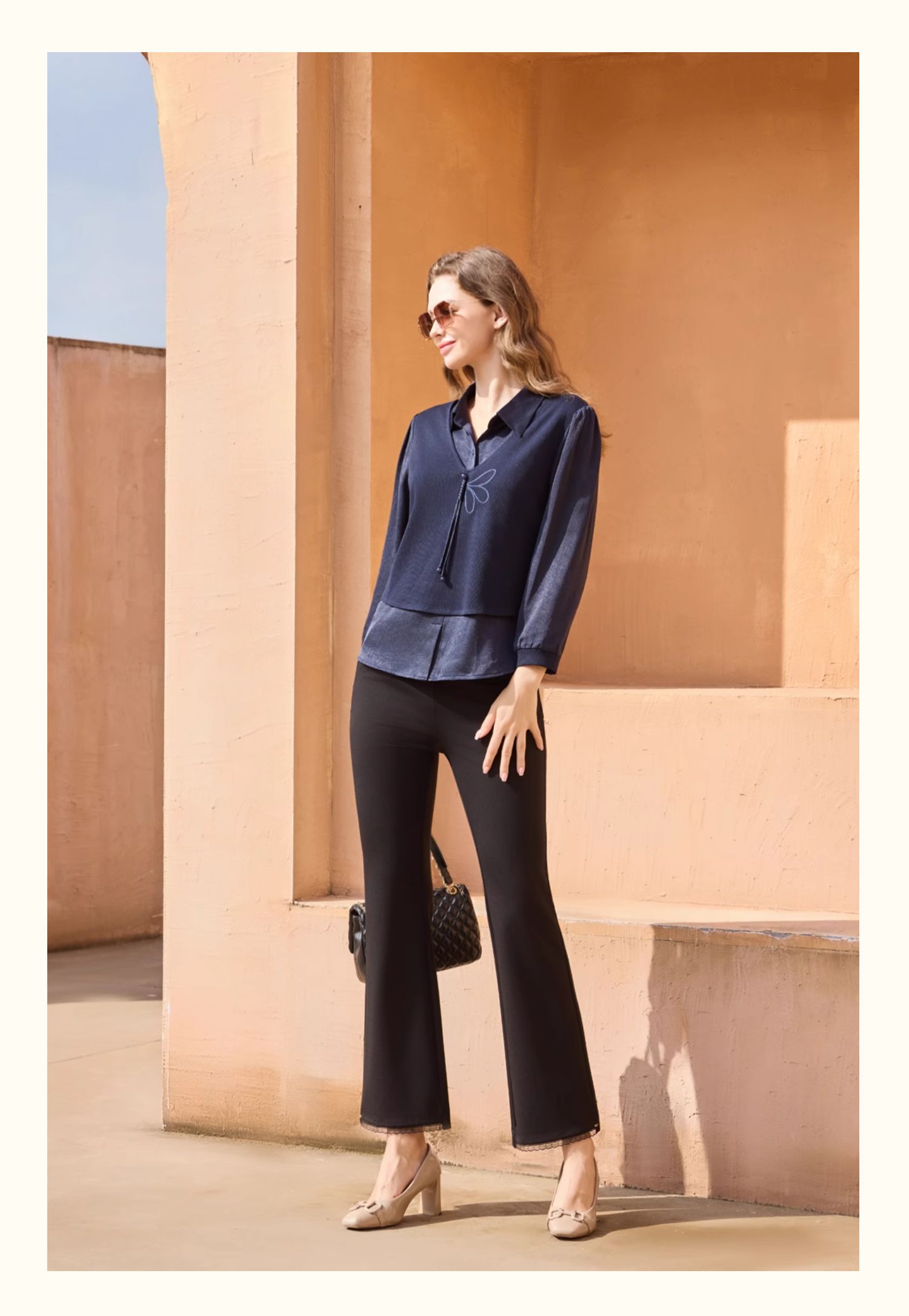 半身缘女裤 春季修身舒适百搭喇叭裤261102M30320012