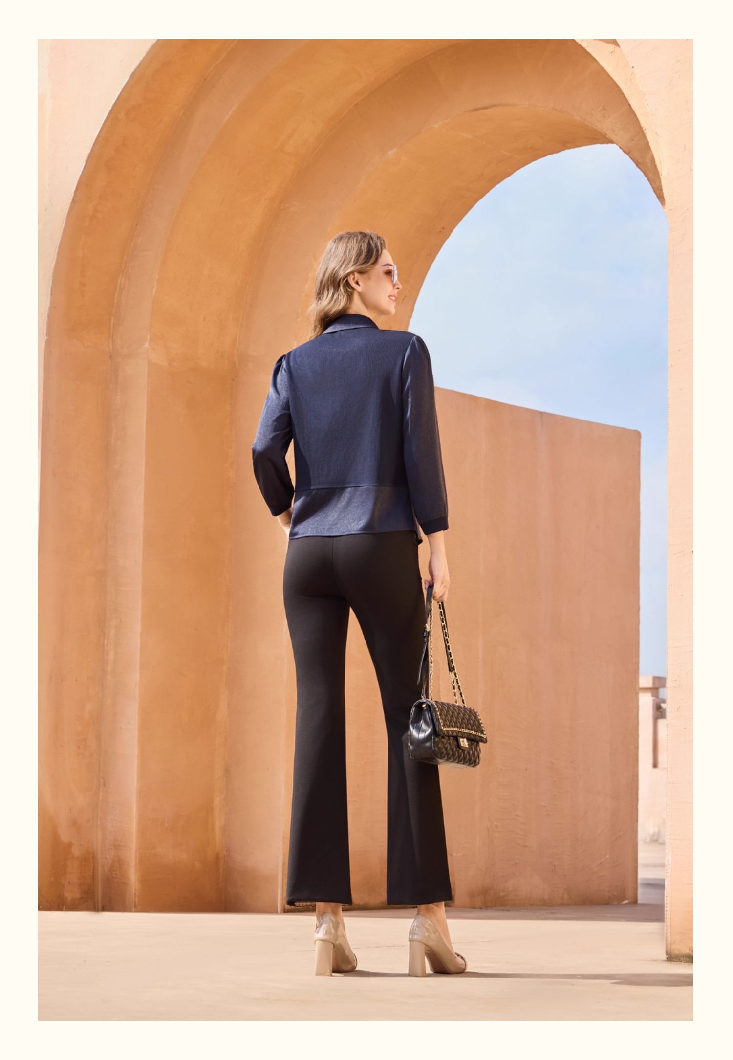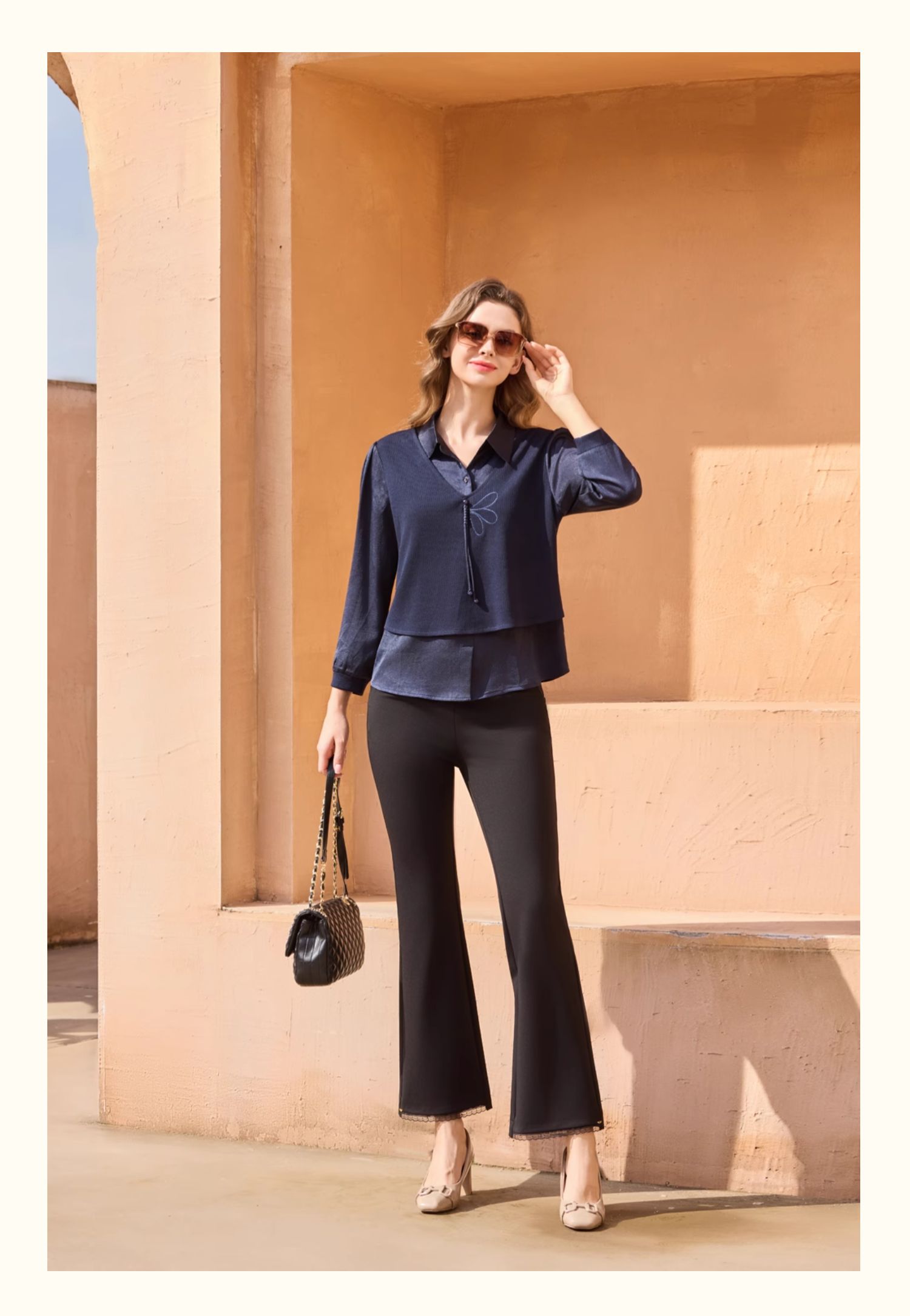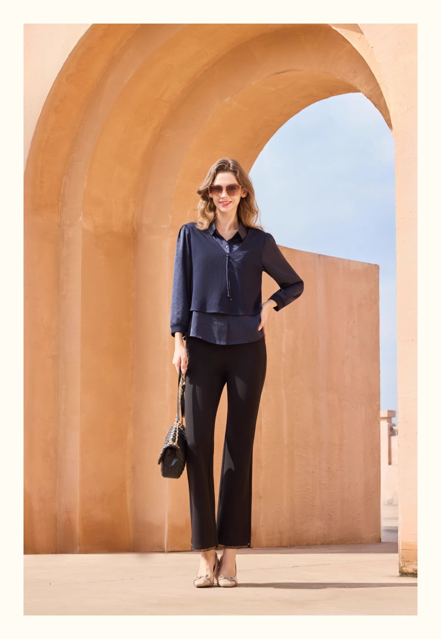 半身缘女裤 春季修身舒适百搭喇叭裤261102M30320012