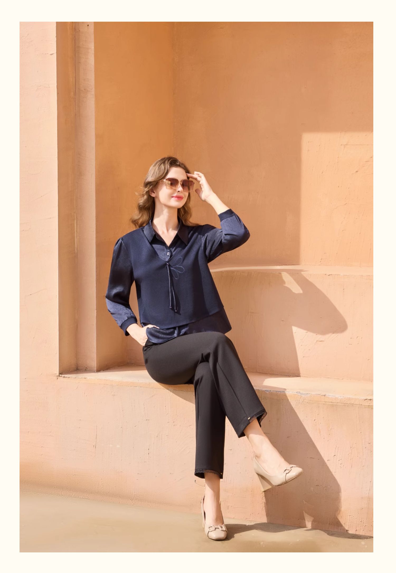 半身缘女装 秋季V领假两件装饰内搭针织打底衫毛衣JL002