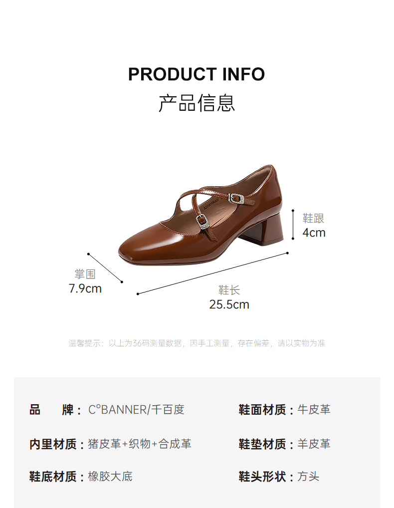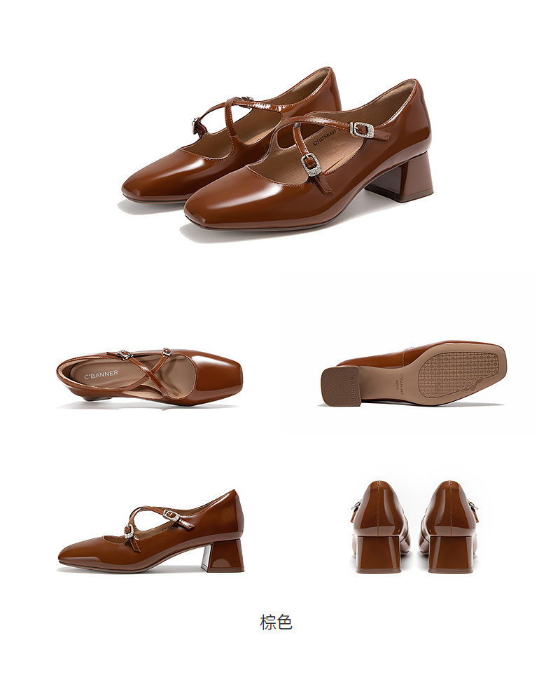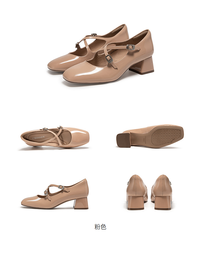 【静音系列】千百度牛漆皮玛丽珍女鞋搭扣粗高跟单鞋A25185506