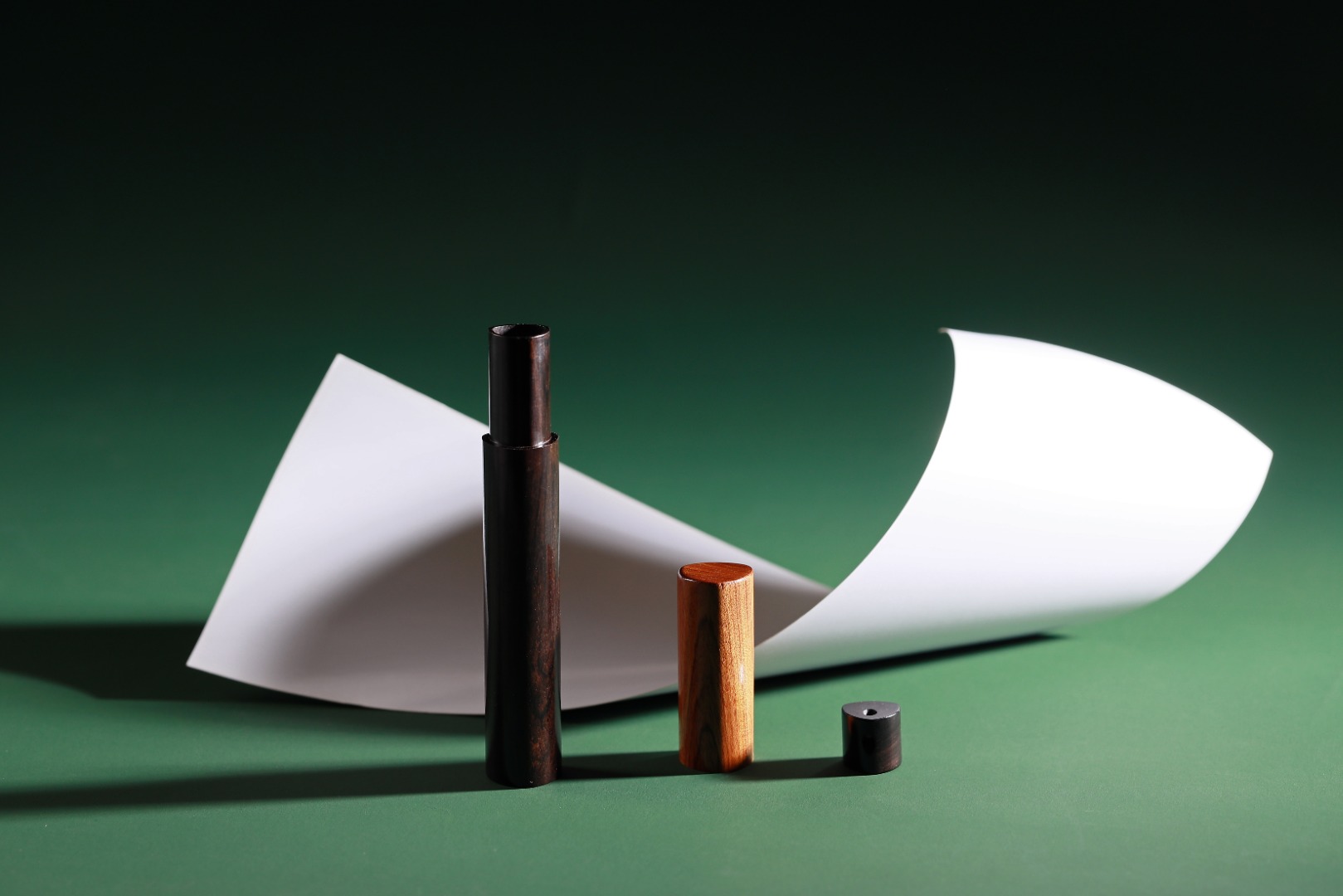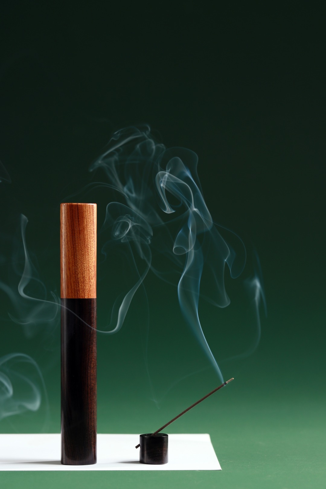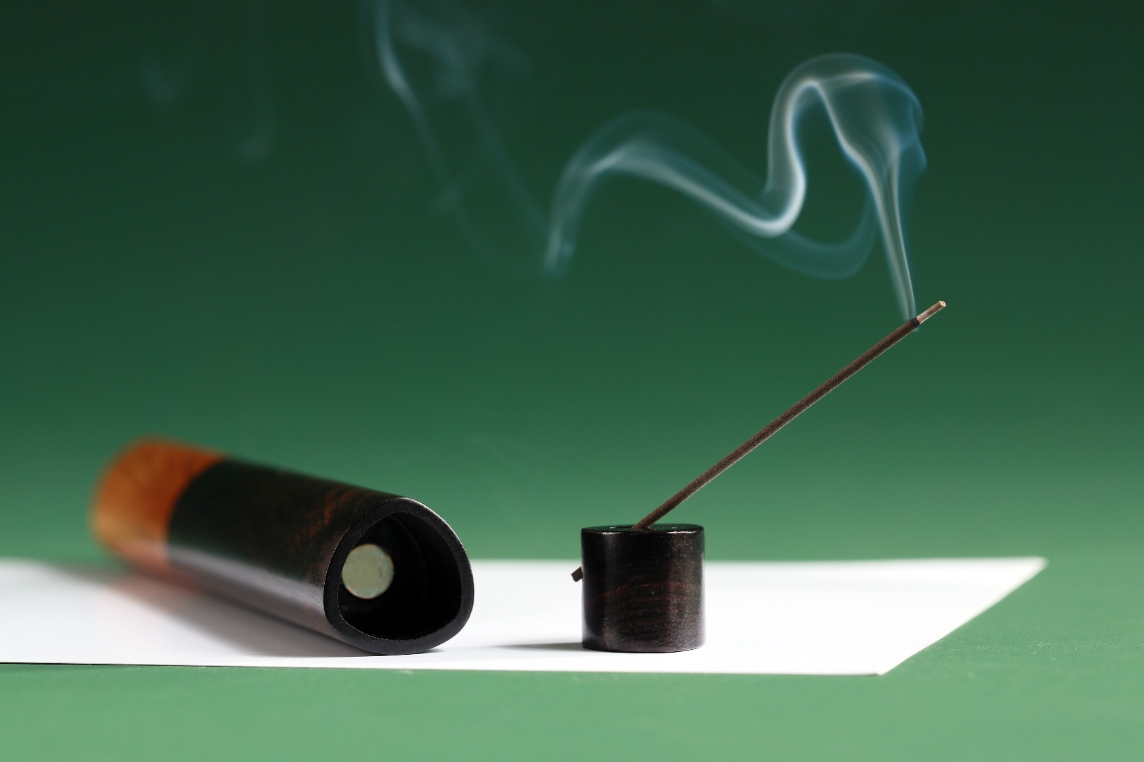 紫光檀油润老料,一木掏制,光素无雕,尽品木纹本色,线条流畅,心机设计,隐藏式磁吸香插。形制文雅,手感温润,轻盈小巧,旅行便装,燃香、储香一体化,案头燃香伴青烟缭绕流转,气韵清逸脱俗。