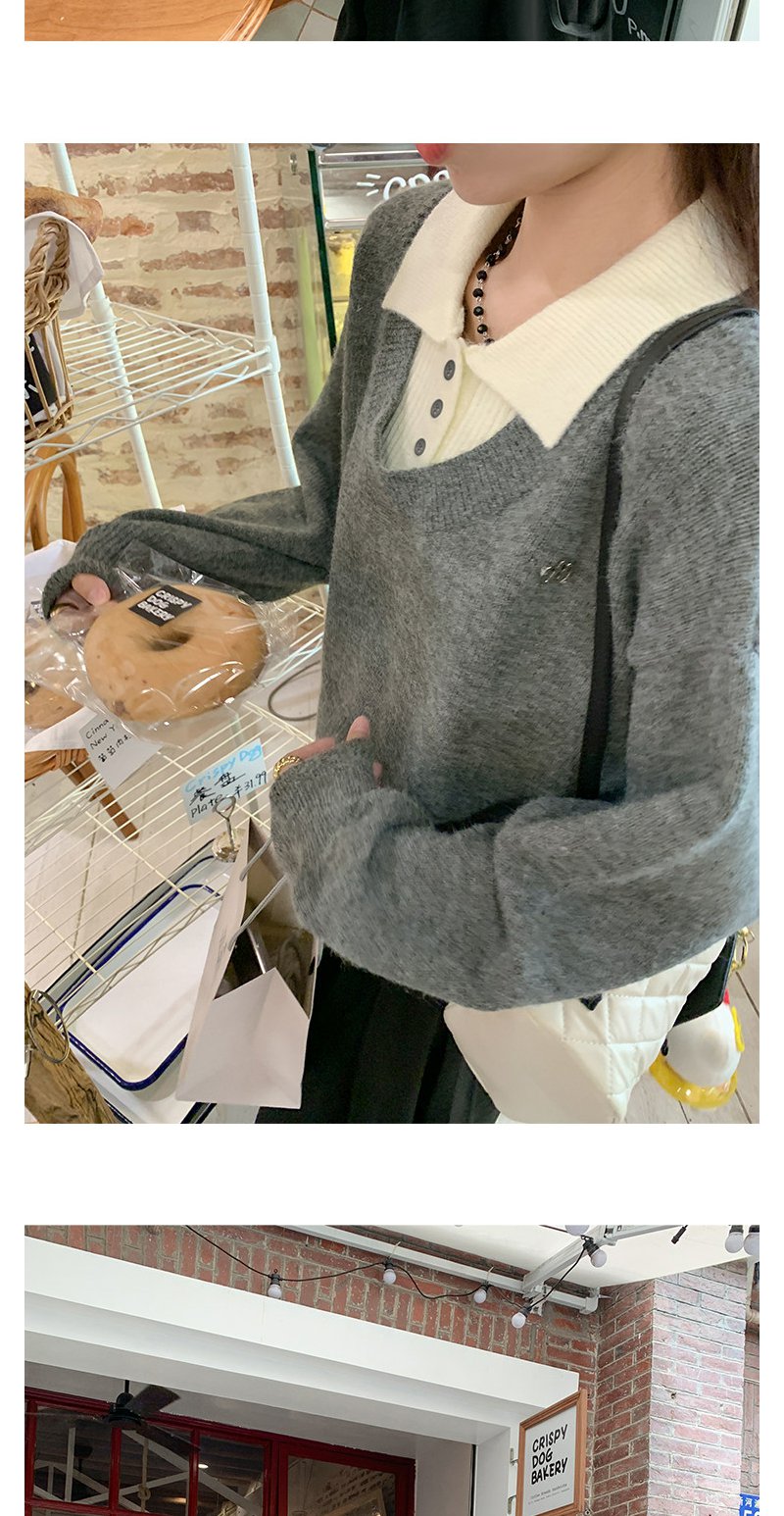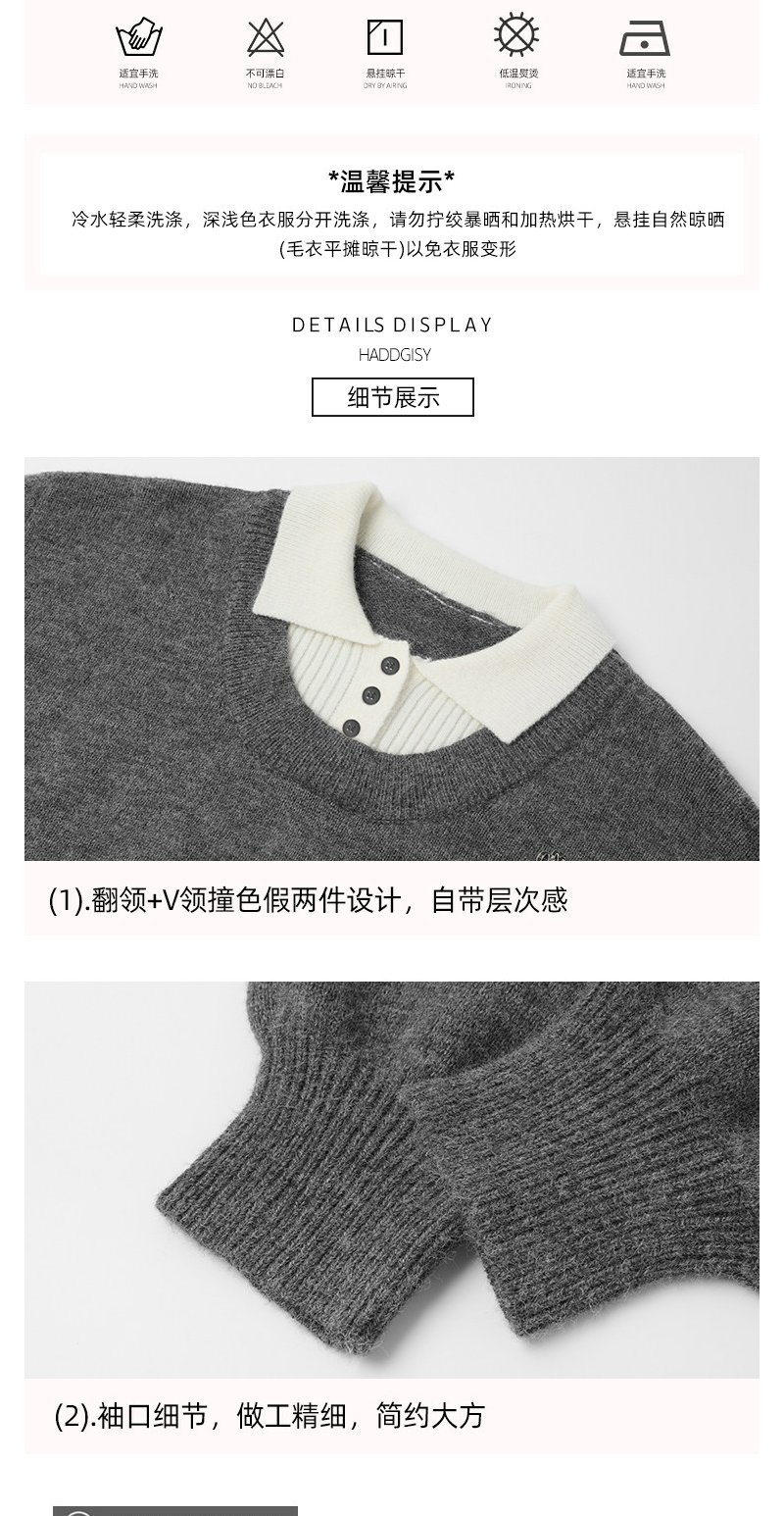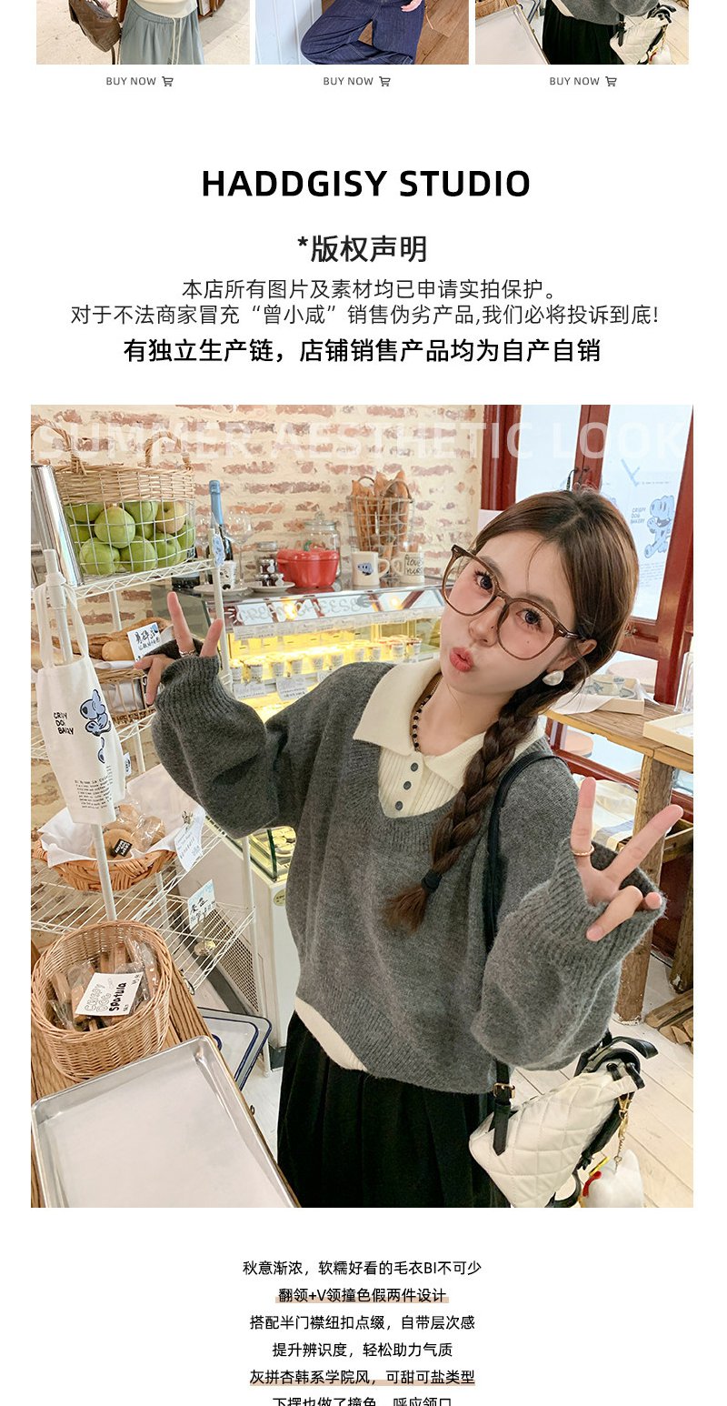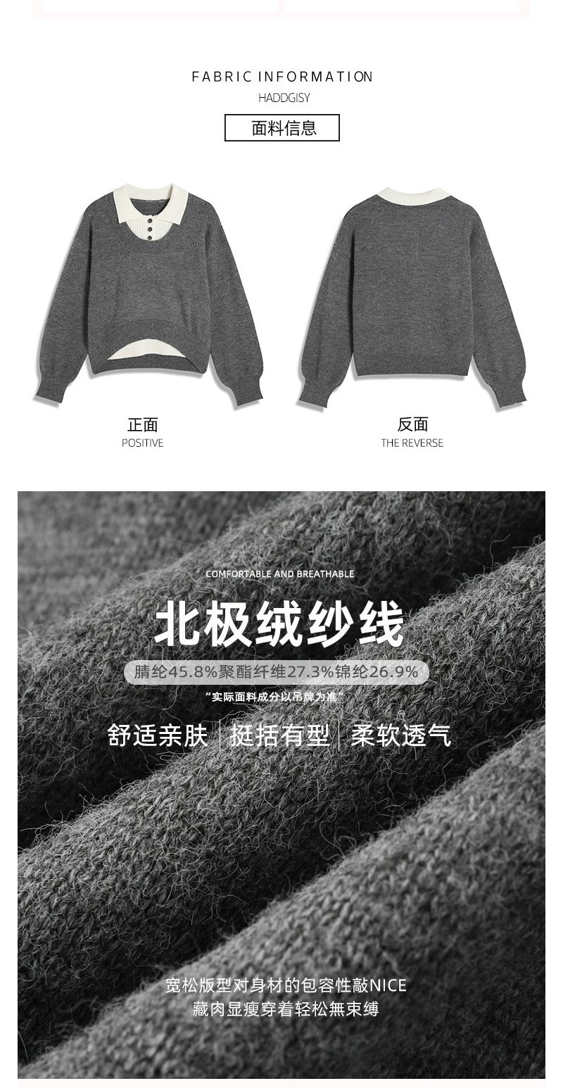 <曾小咸推荐>假两件灰色polo领毛衣