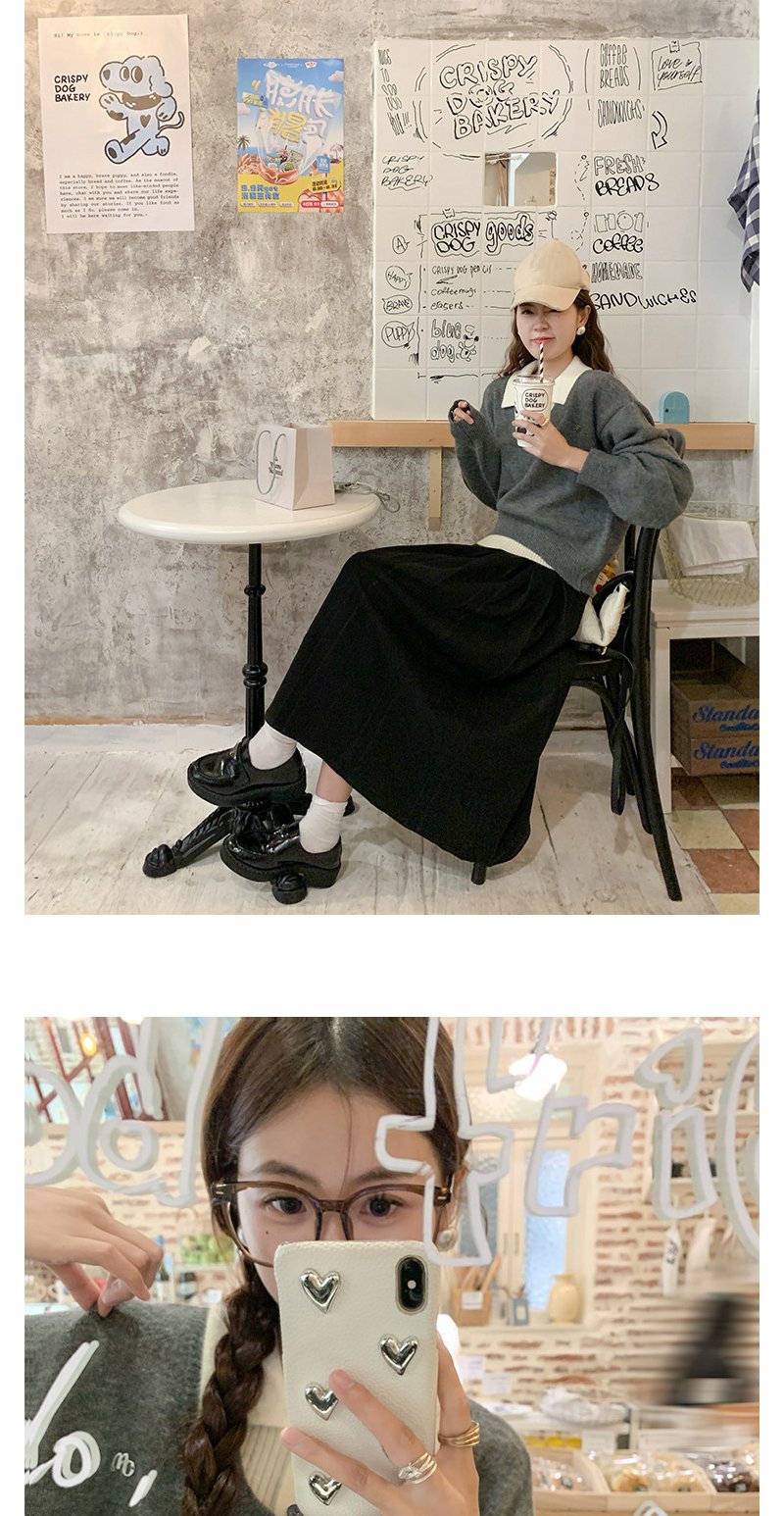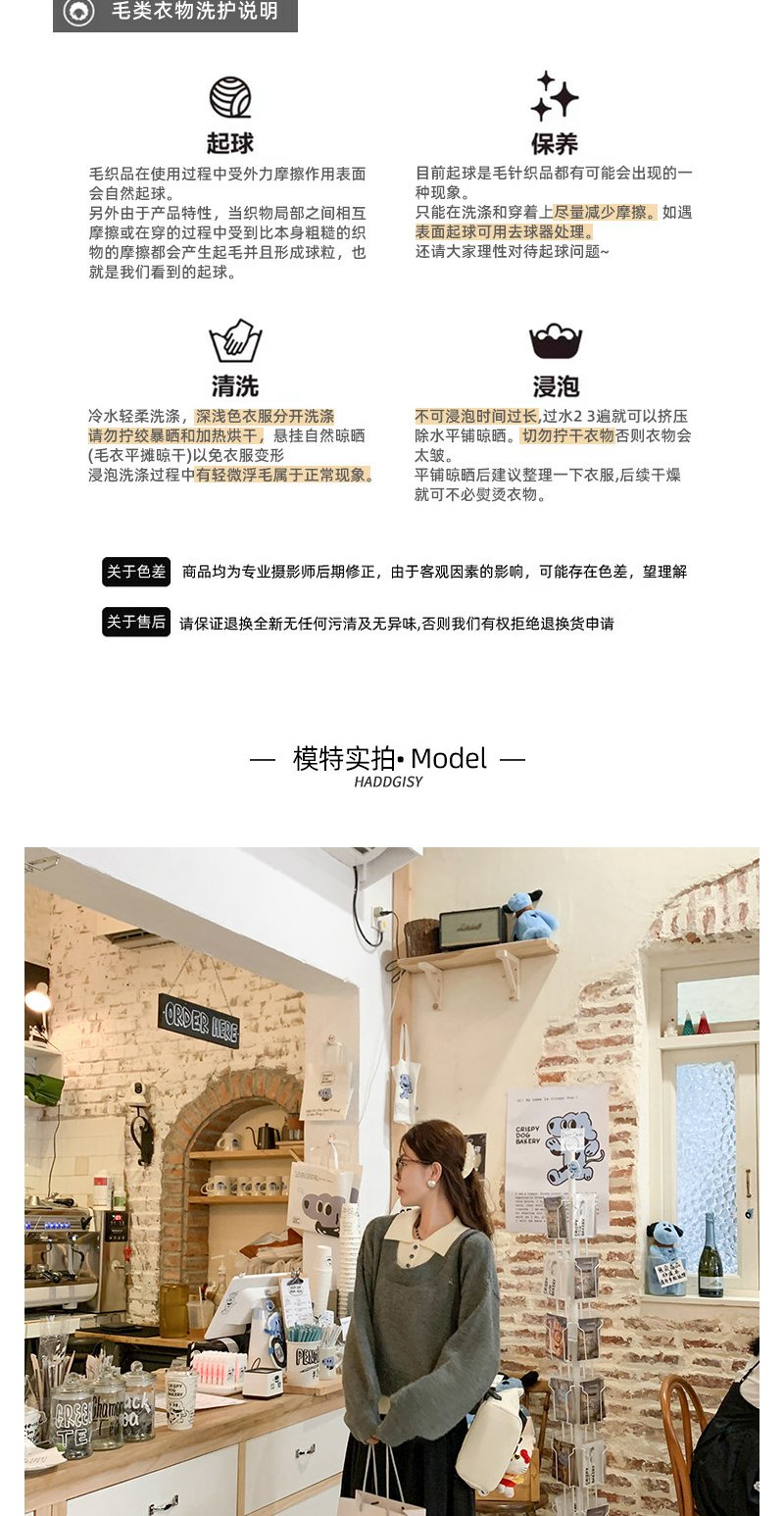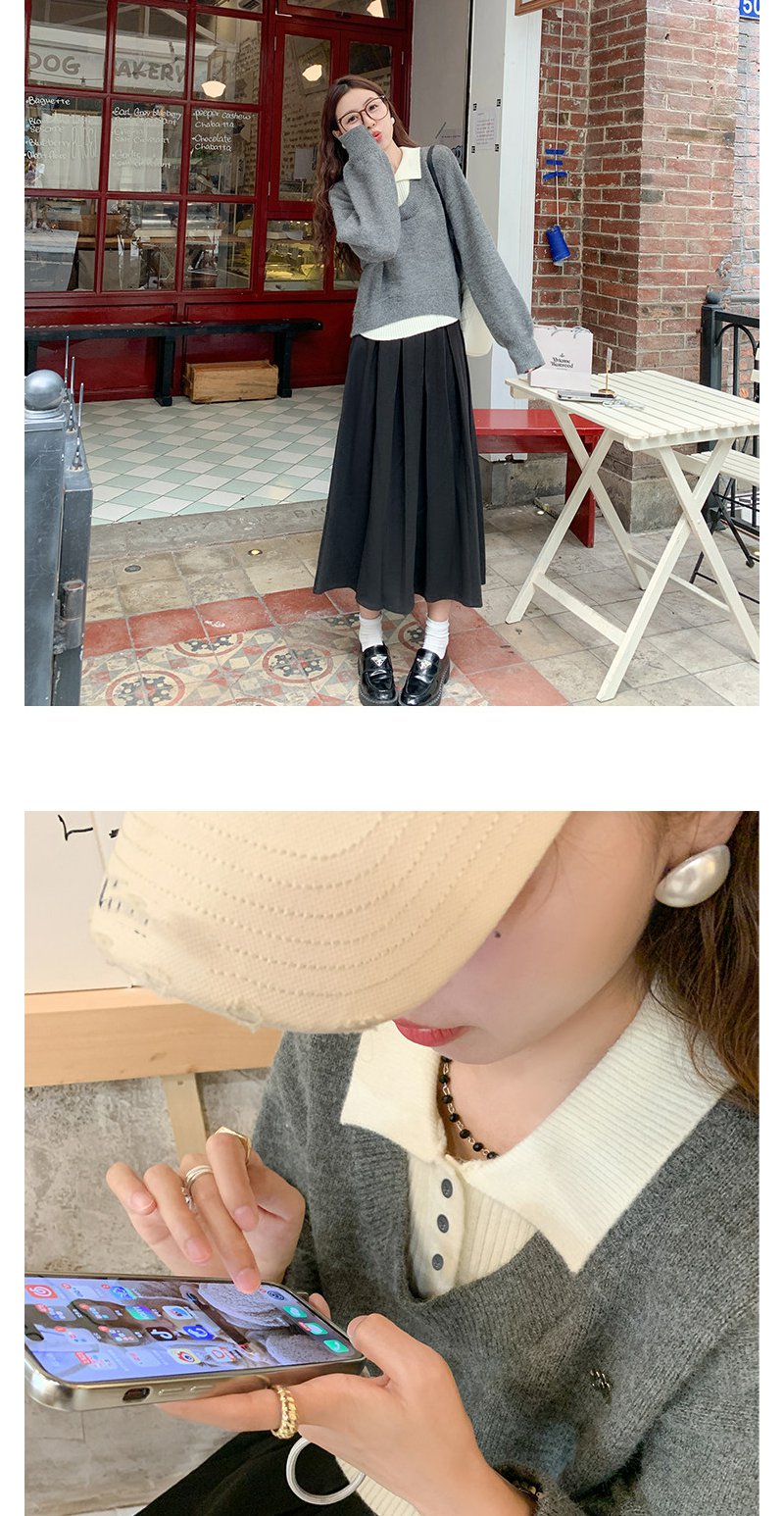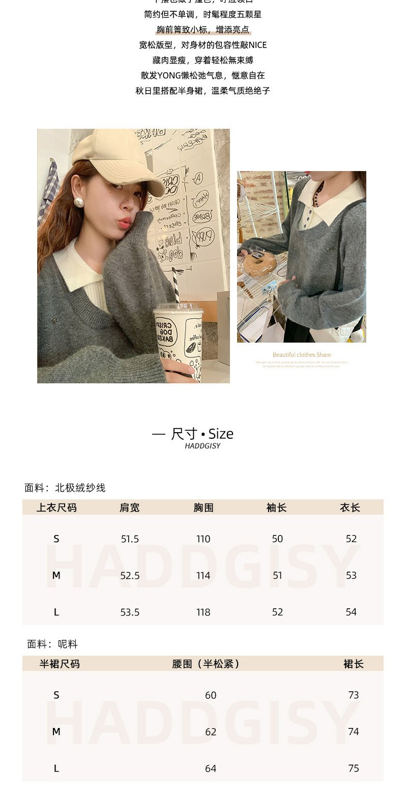 <曾小咸推荐>假两件灰色polo领毛衣