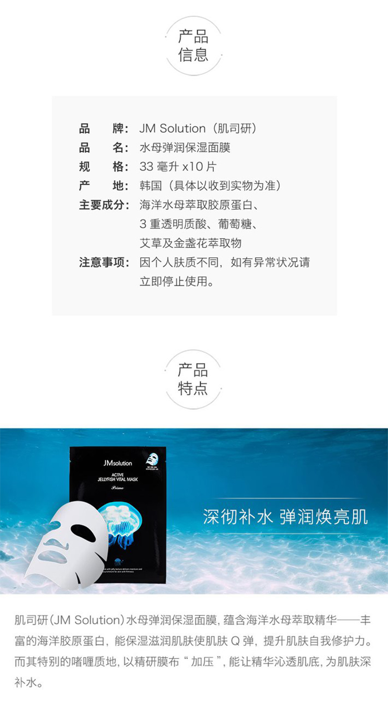 JM肌司研 新款水母面膜10片/盒
