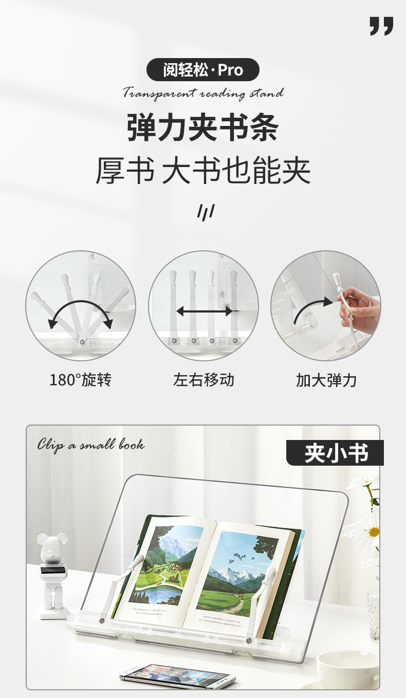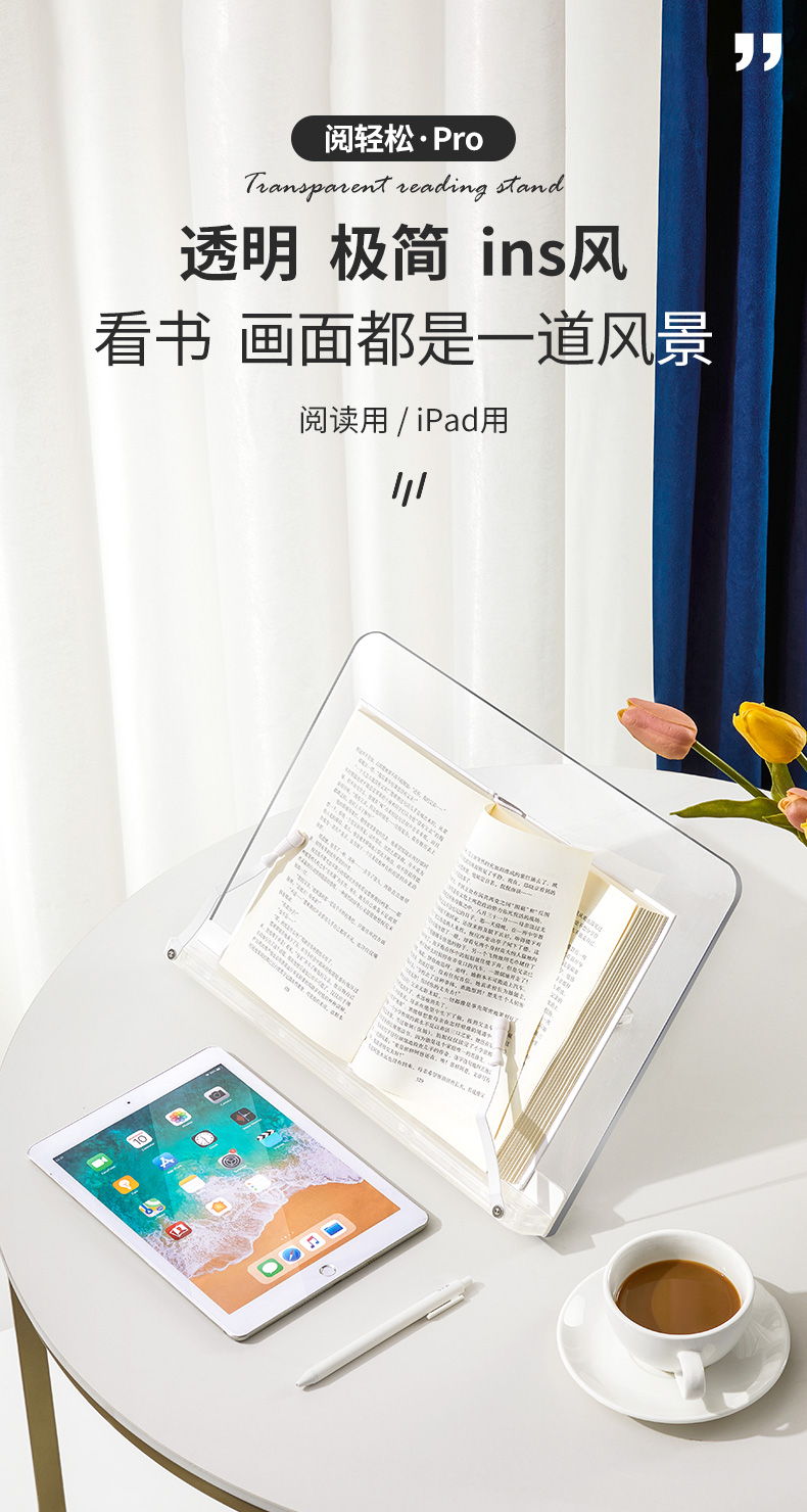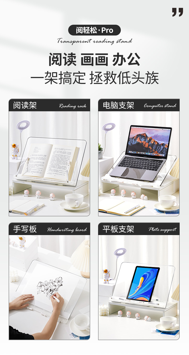 南国书香亚克力透明阅读架多功能读书看书支架学生考研学习书架桌面书立架书夹固定书本平板电脑简约ins风