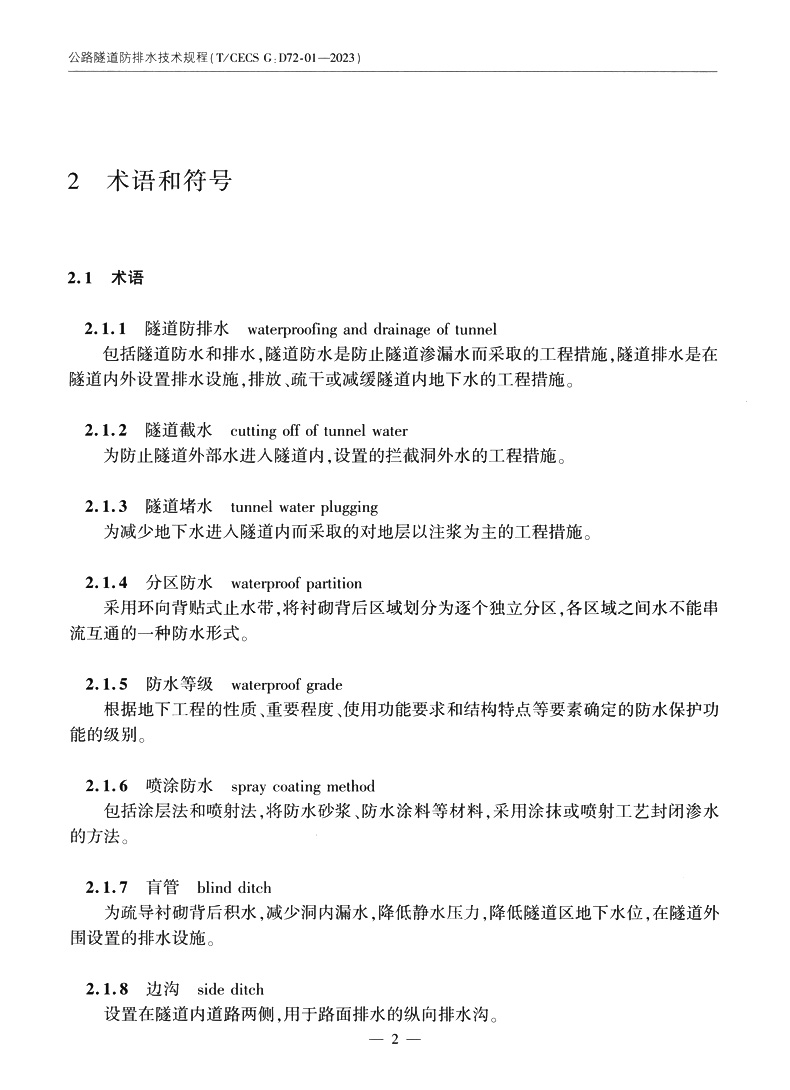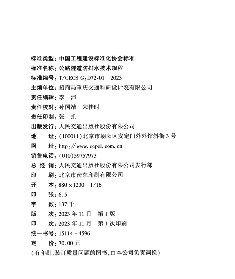 书名:公路隧道防排水技术规程(T/CECS G:D72-01—2023)