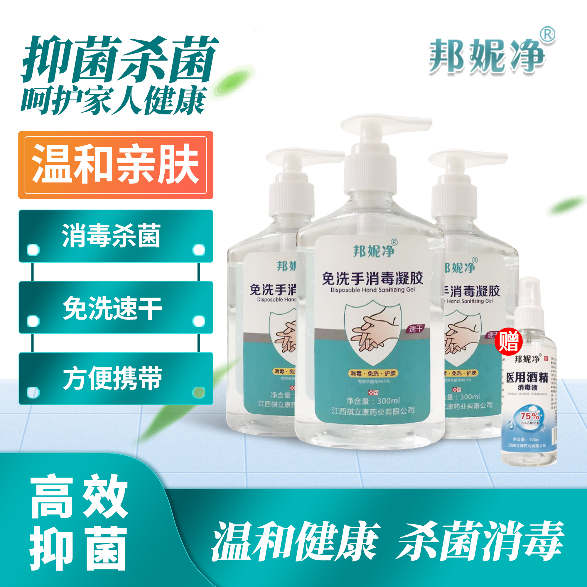邦妮净免洗手液消毒液凝胶酒精皮肤杀菌抑菌家用商用老幼便携式