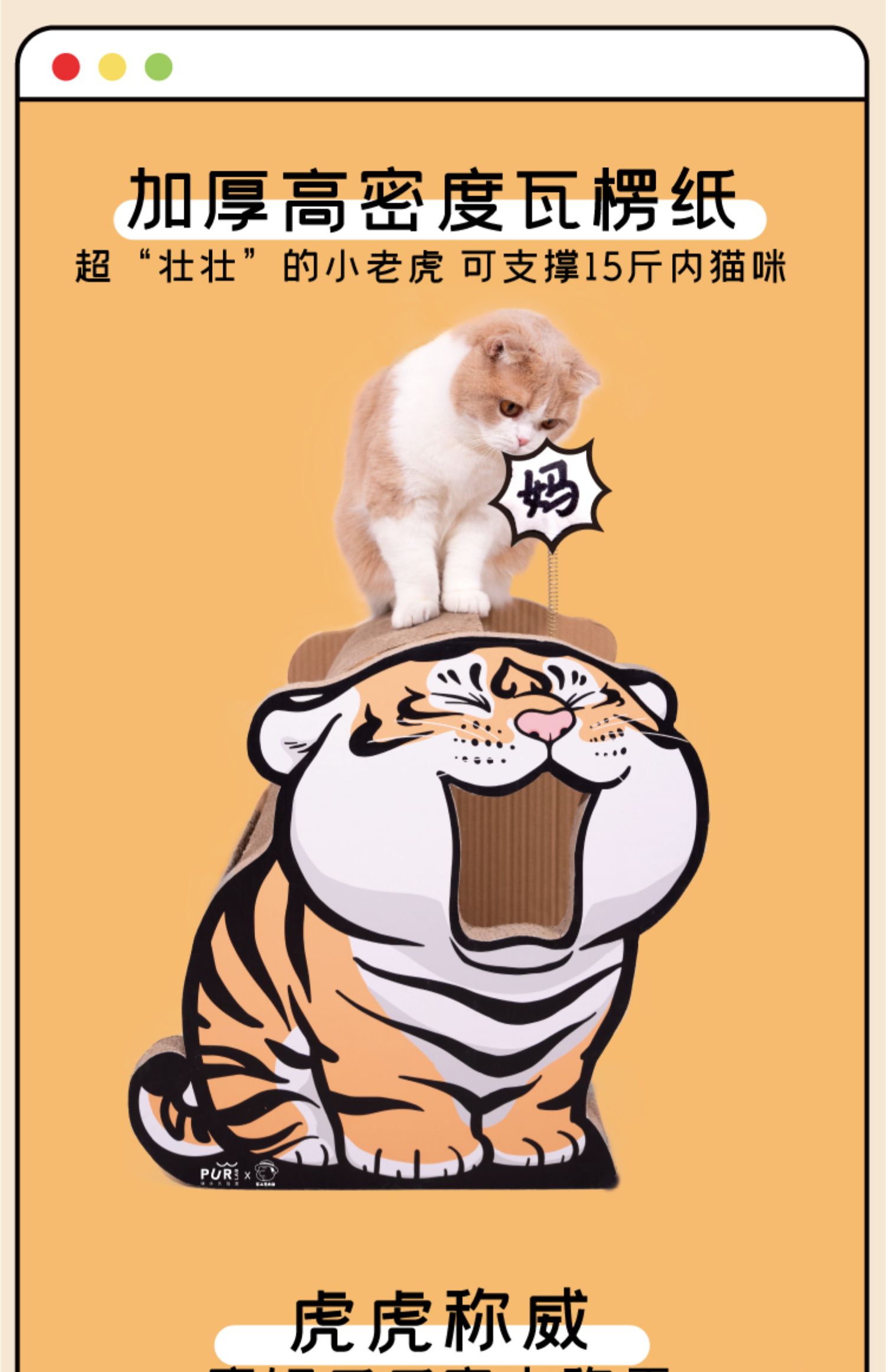 噗扑实验室不二马大叔联名喊妈小虎立式猫抓板虎年猫玩具耐磨自嗨