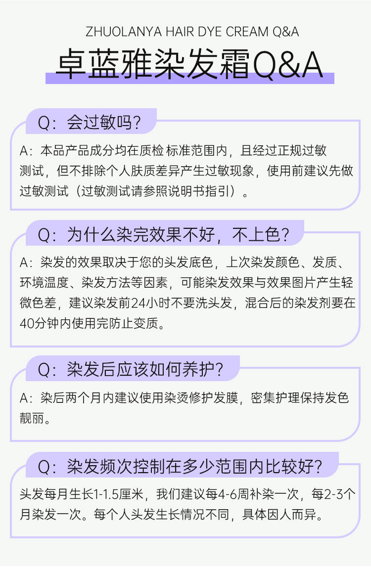 2、建议大家染发前进行皮肤测试哦,没有红肿过敏现象即可放心使用