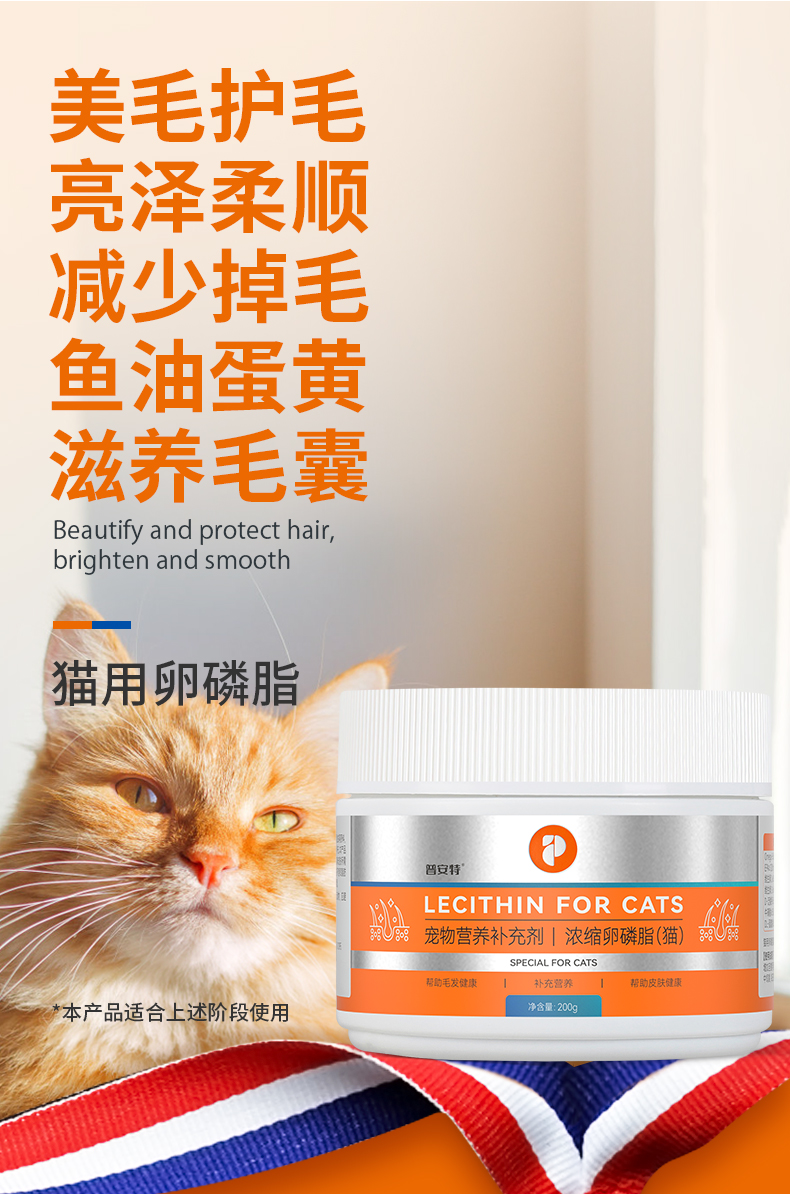 【65元任选2件】普安特卵磷脂猫宠物掉毛爆毛护毛猫咪美毛专用浓缩鱼油猫用软磷脂