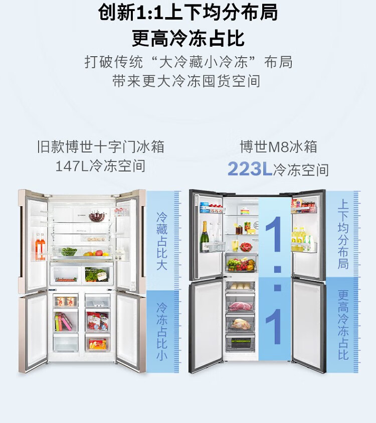 博世(BOSCH)550L大容量风冷无霜十字对开门变频冰箱铂金净风节能一级能效 微缝嵌入式 K6C82EA98C