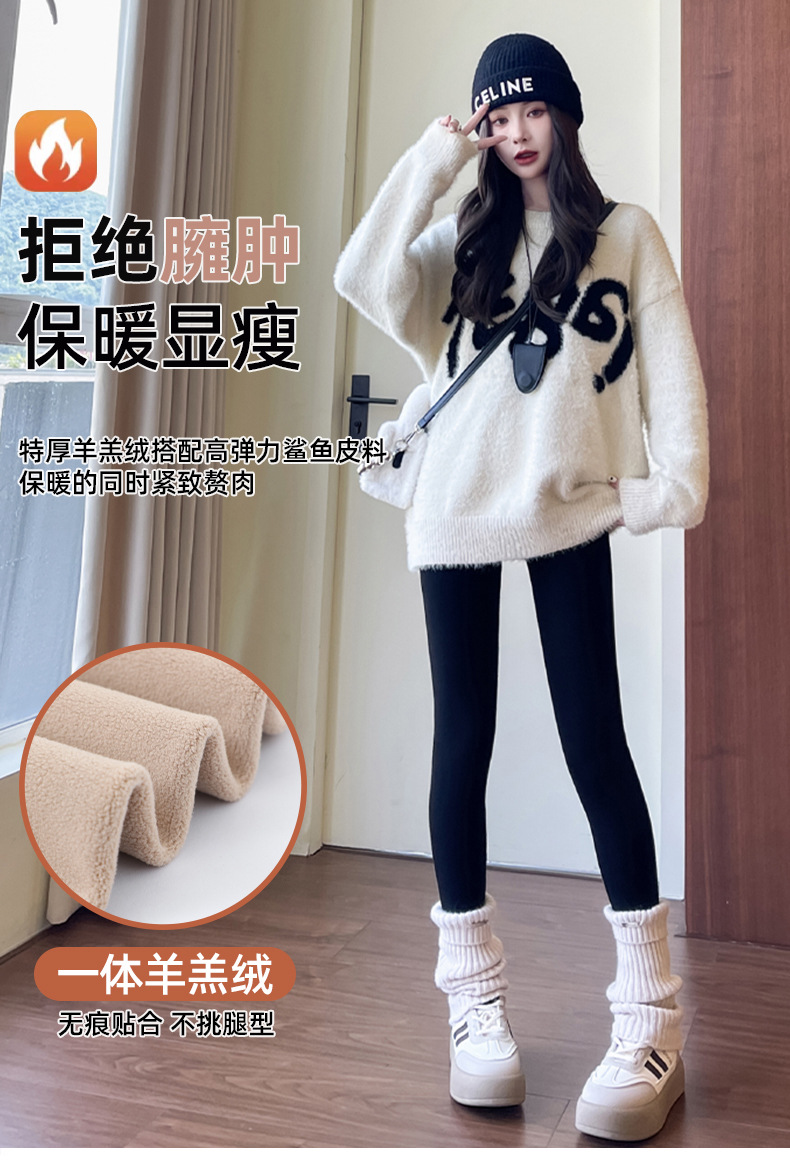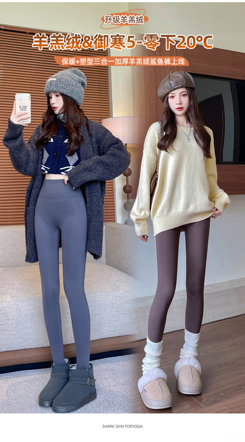 无尴尬线鲨鱼裤女羊羔绒兔绒保暖外穿冬季2025新款加绒加厚芭比裤瑜伽紧身打底裤秋冬加绒鲨鱼裤
