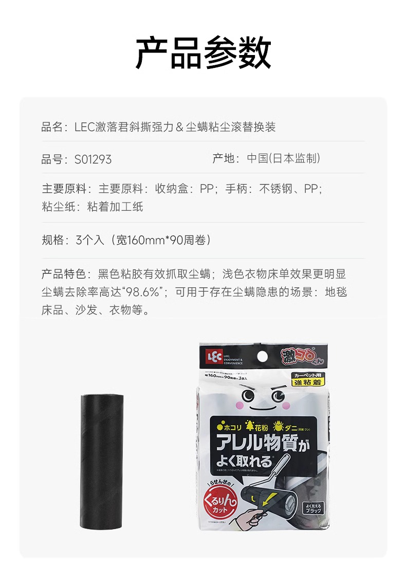 日本lec除螨专用粘毛器滚筒纸滚替换装 可撕式滚刷滚轮粘尘纸床上螨虫清洁
