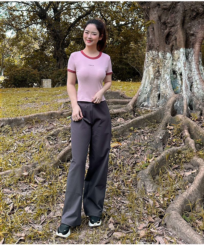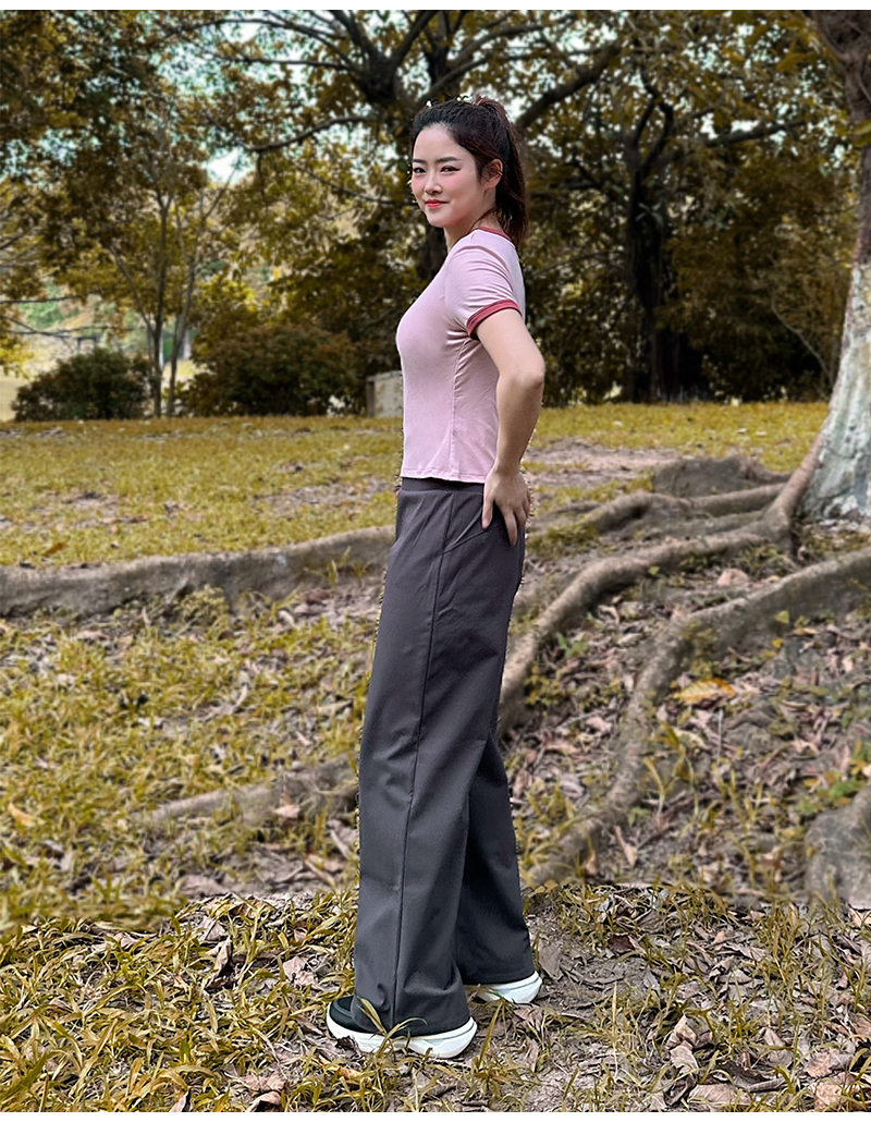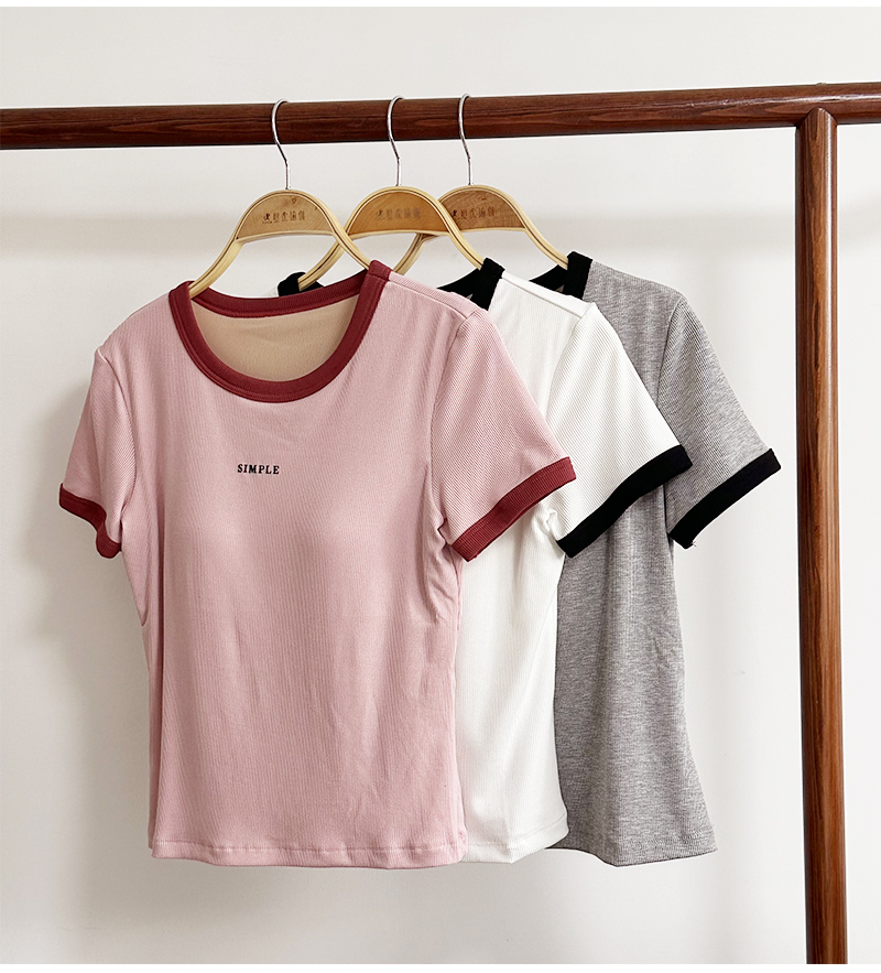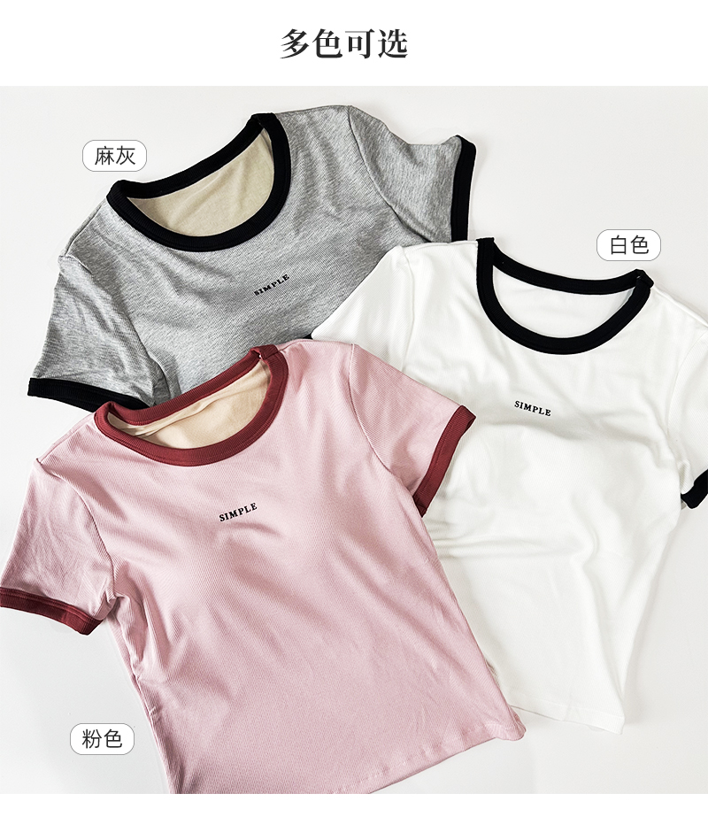 壁虎瑜伽【2511SY432】撞色一体杯休闲T恤【5天发货】(一体式胸垫)