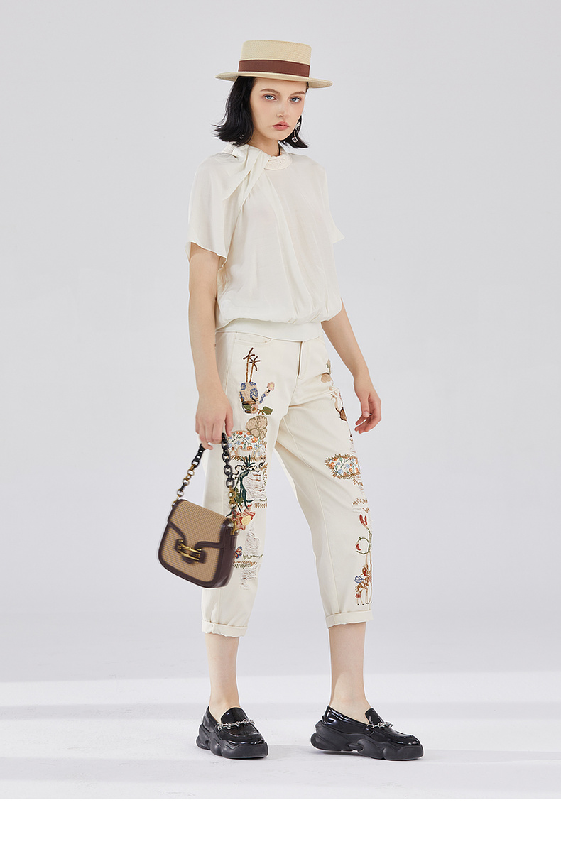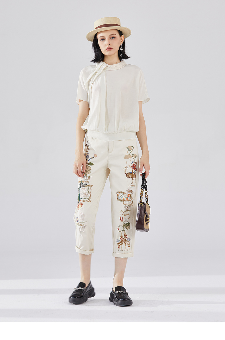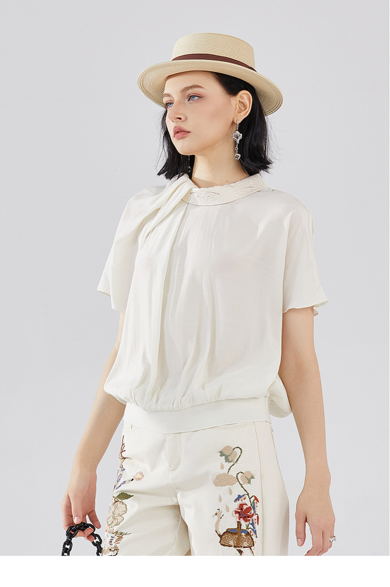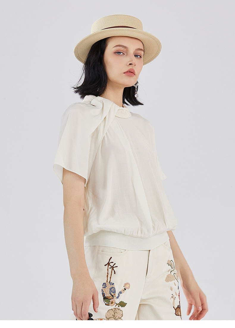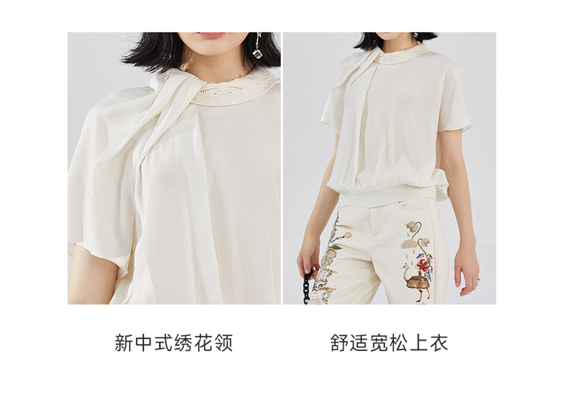 谜底上衣短袖女2023秋新款简约时尚设计感宽松百搭衬衫233MS0006