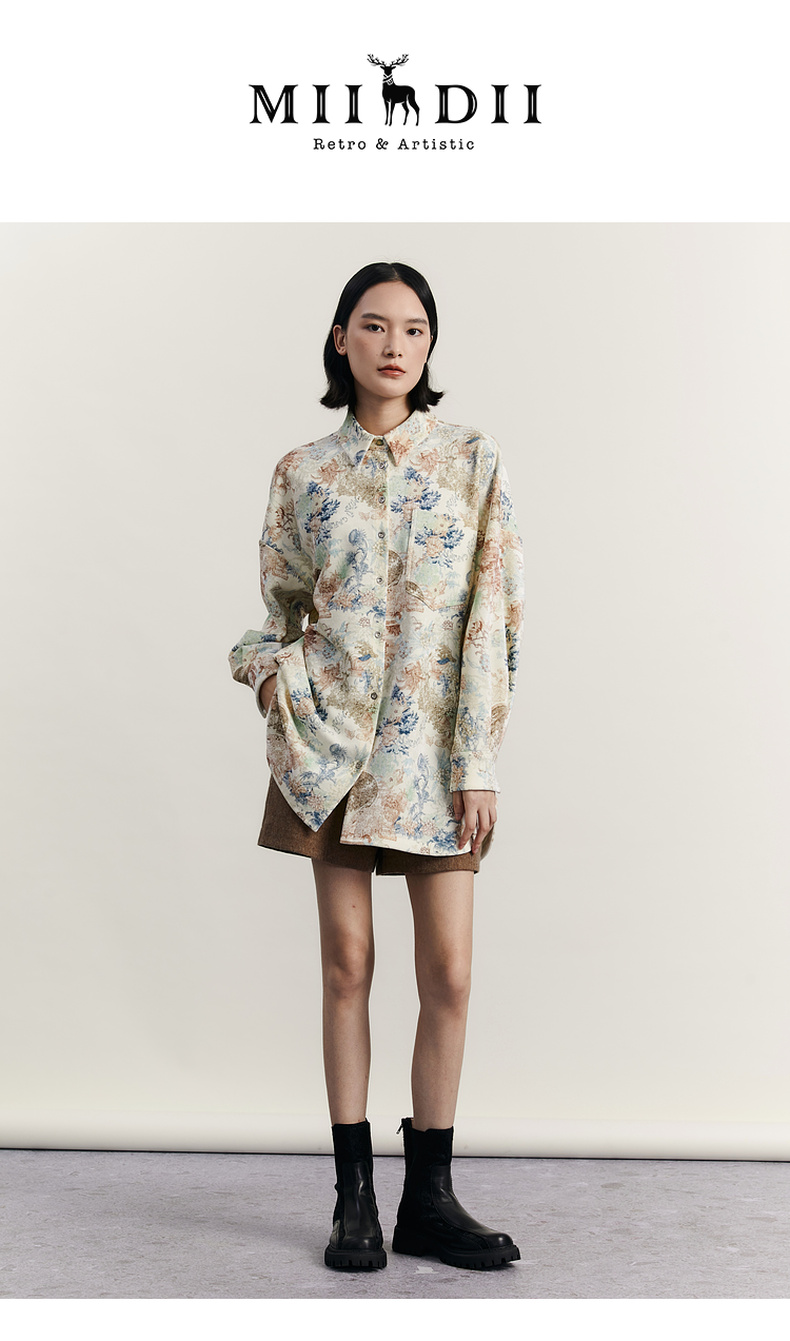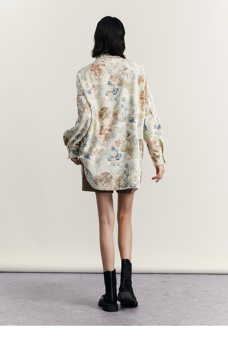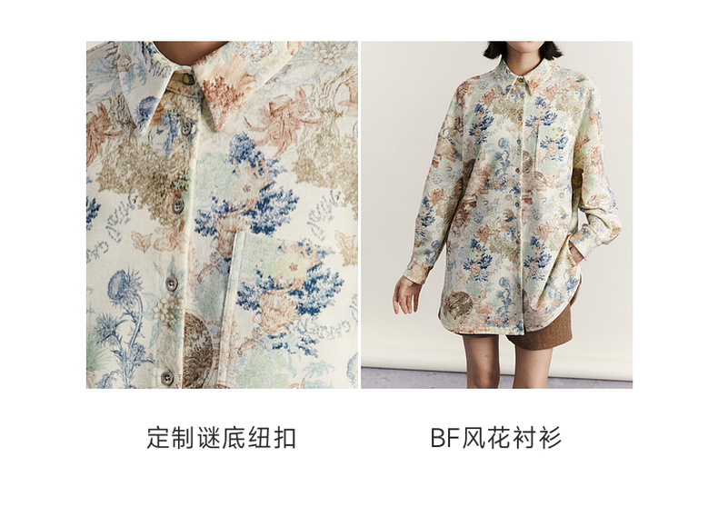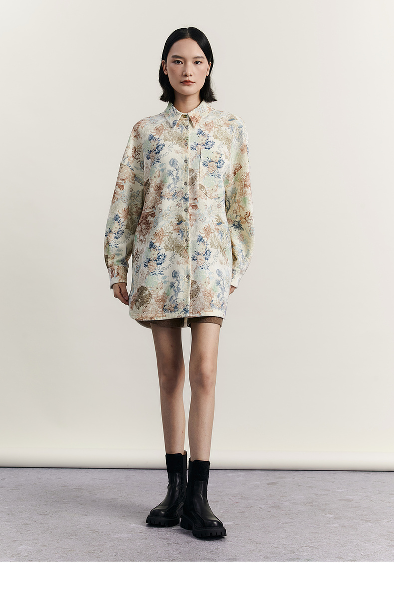 谜底花色衬衫长袖女2023冬款BF风宽松雪尼尔中长款衬衣234MC1560