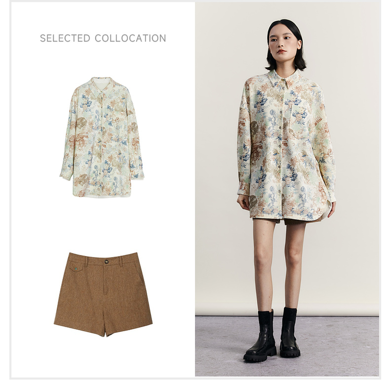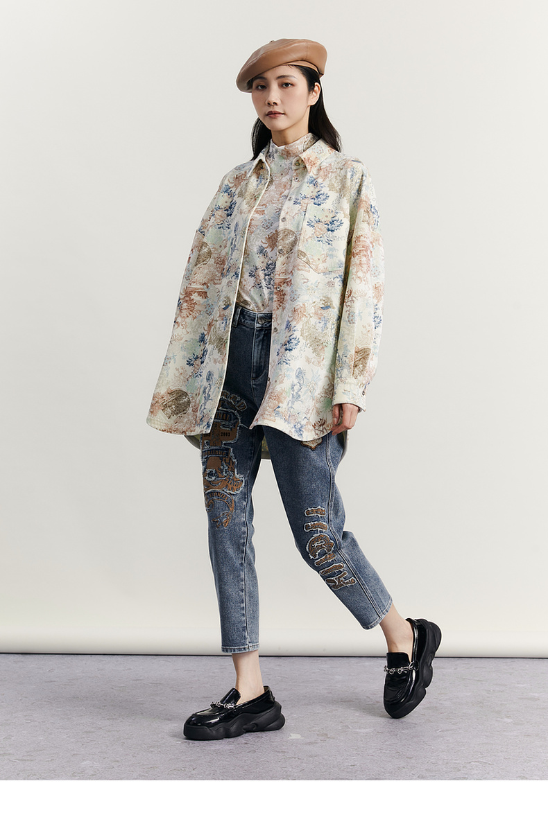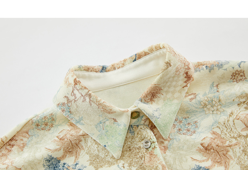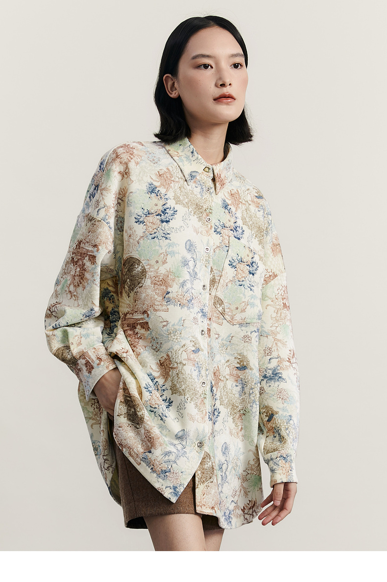谜底花色衬衫长袖女2023冬款BF风宽松雪尼尔中长款衬衣234MC1560