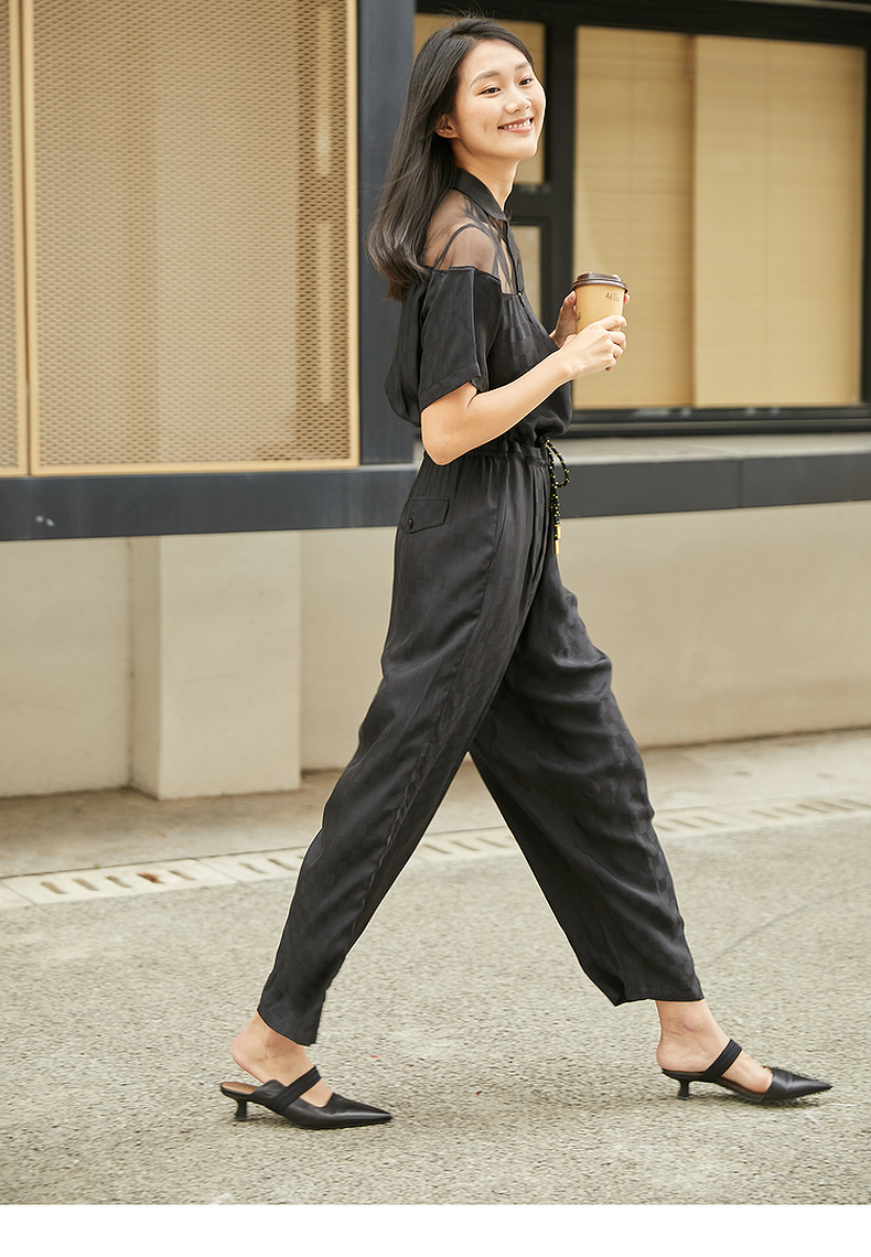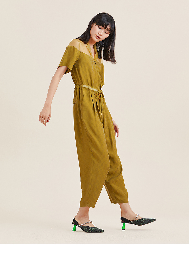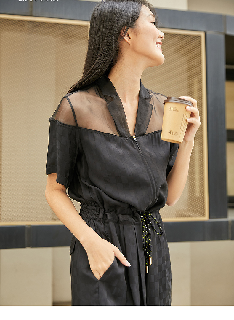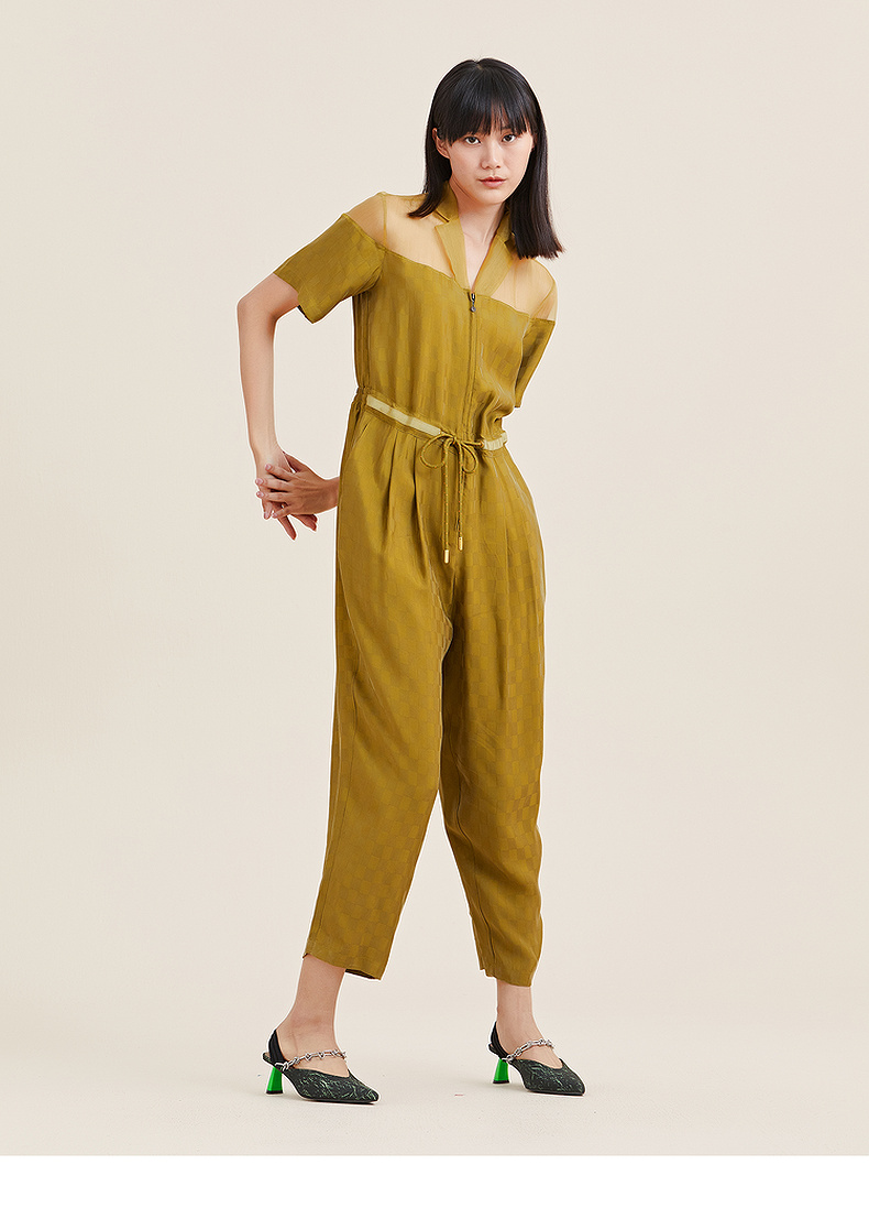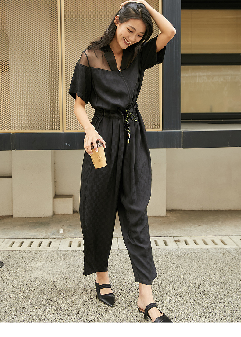 谜底2022夏季新款连体裤女夏通勤西装领抽强收腰休闲裤225MK6038