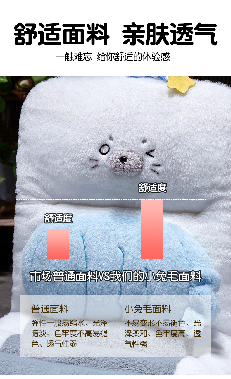 自然醒萌萌海豹护腰连体坐垫QYL
