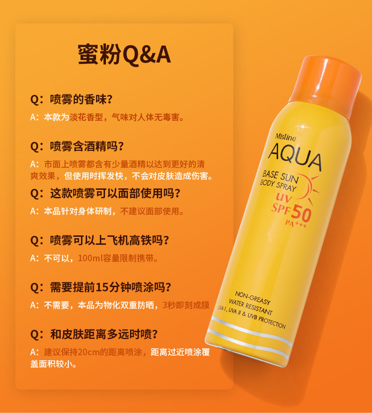 【618抢先购 限时特惠】MISTINE/蜜丝婷泰国防晒乳蜜丝婷水活清透倍护防晒喷雾 100ml