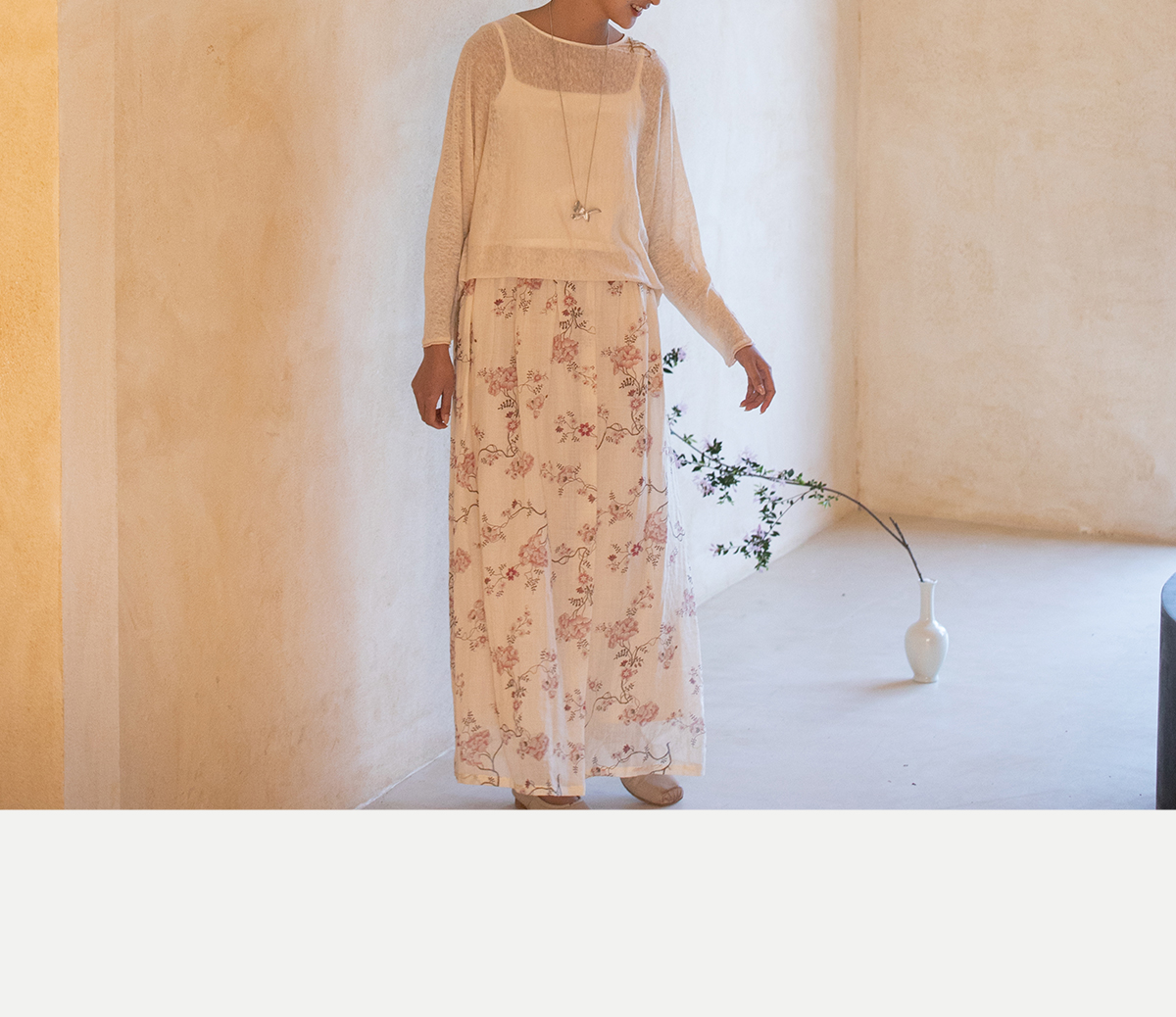 牧衣游原创 印花苎麻半身裙女新款文艺显瘦宽松休闲百搭半裙 穆恩