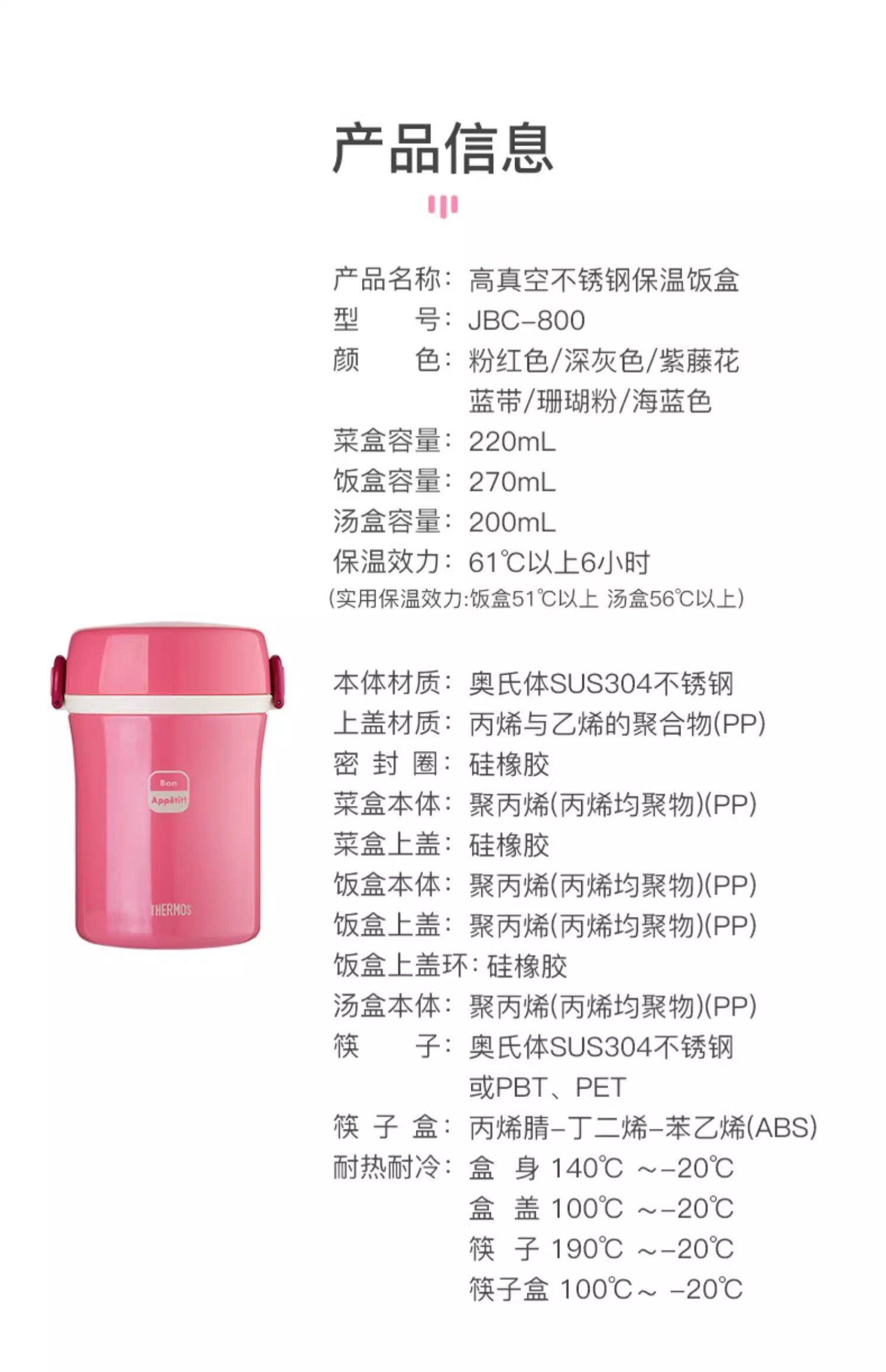 膳魔师不锈钢膳魔师便当盒保温饭盒JBC-800