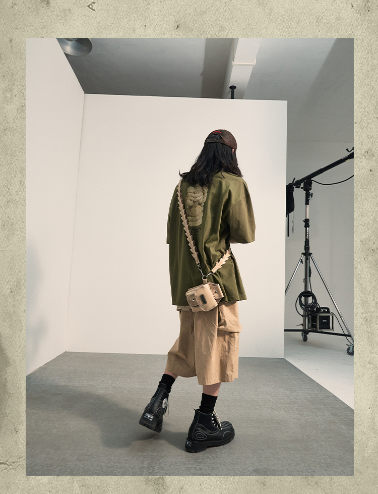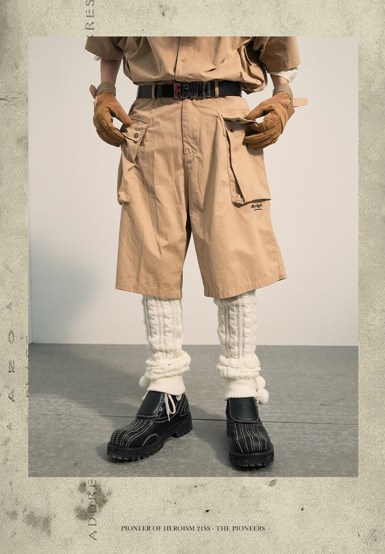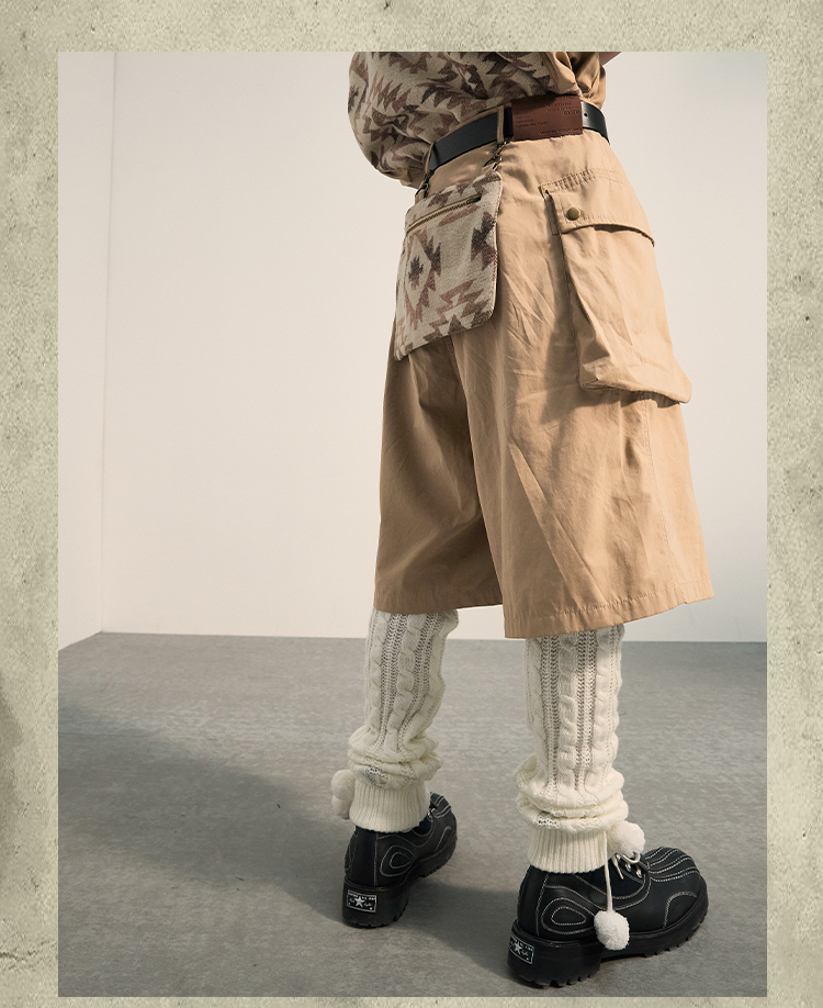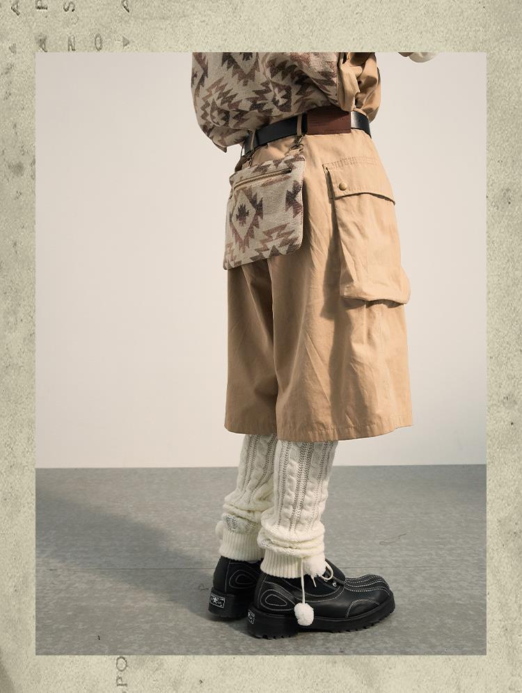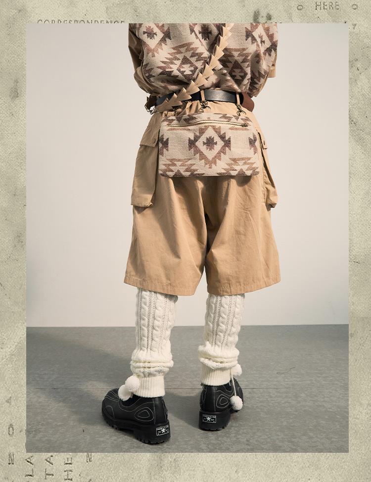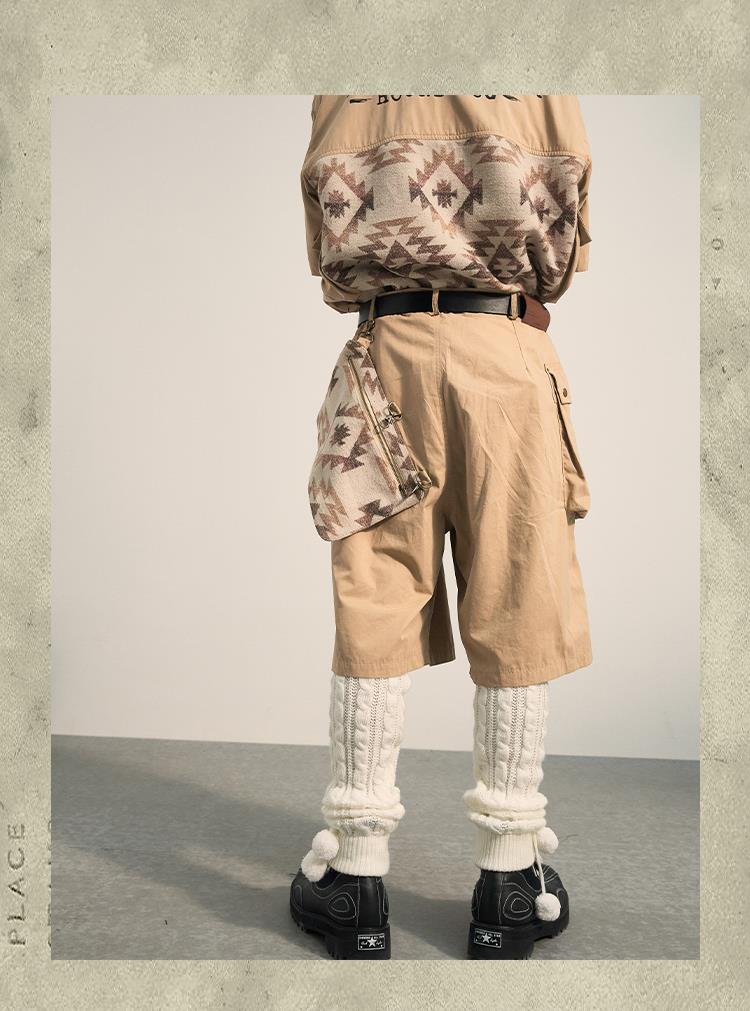 POH 民族风可拆卸编织挂包设计款五分中裤子廓形宽松休闲短裤男夏