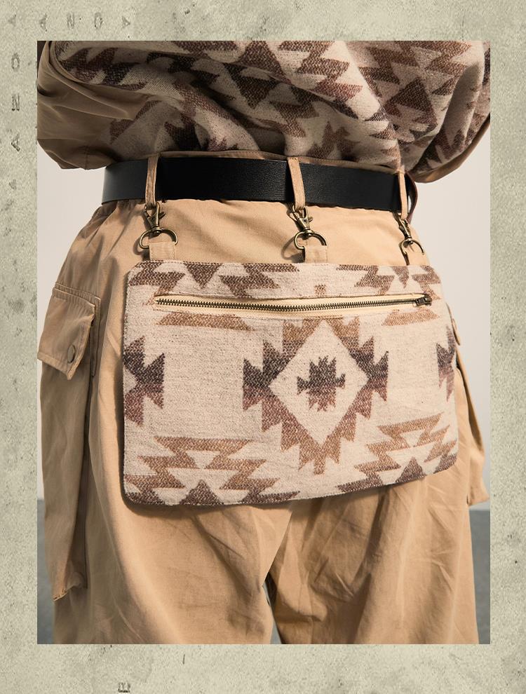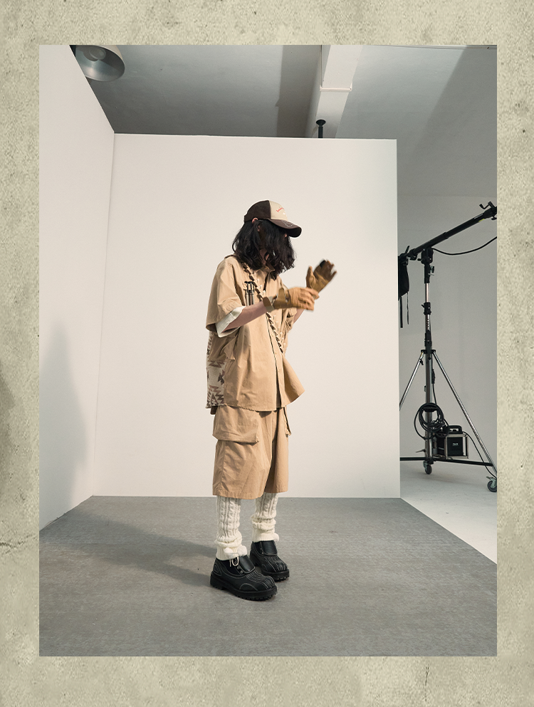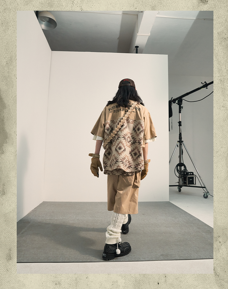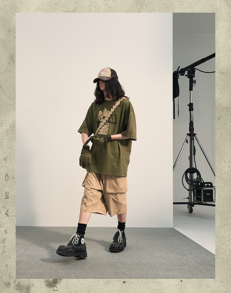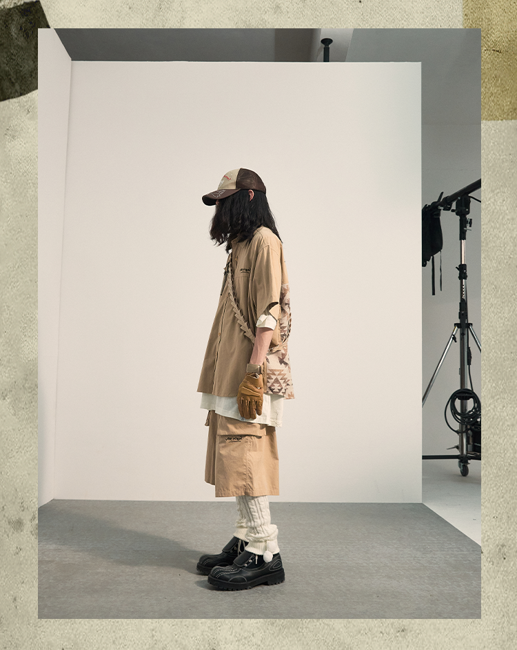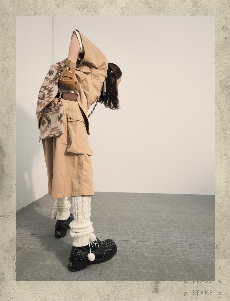 POH 民族风可拆卸编织挂包设计款五分中裤子廓形宽松休闲短裤男夏