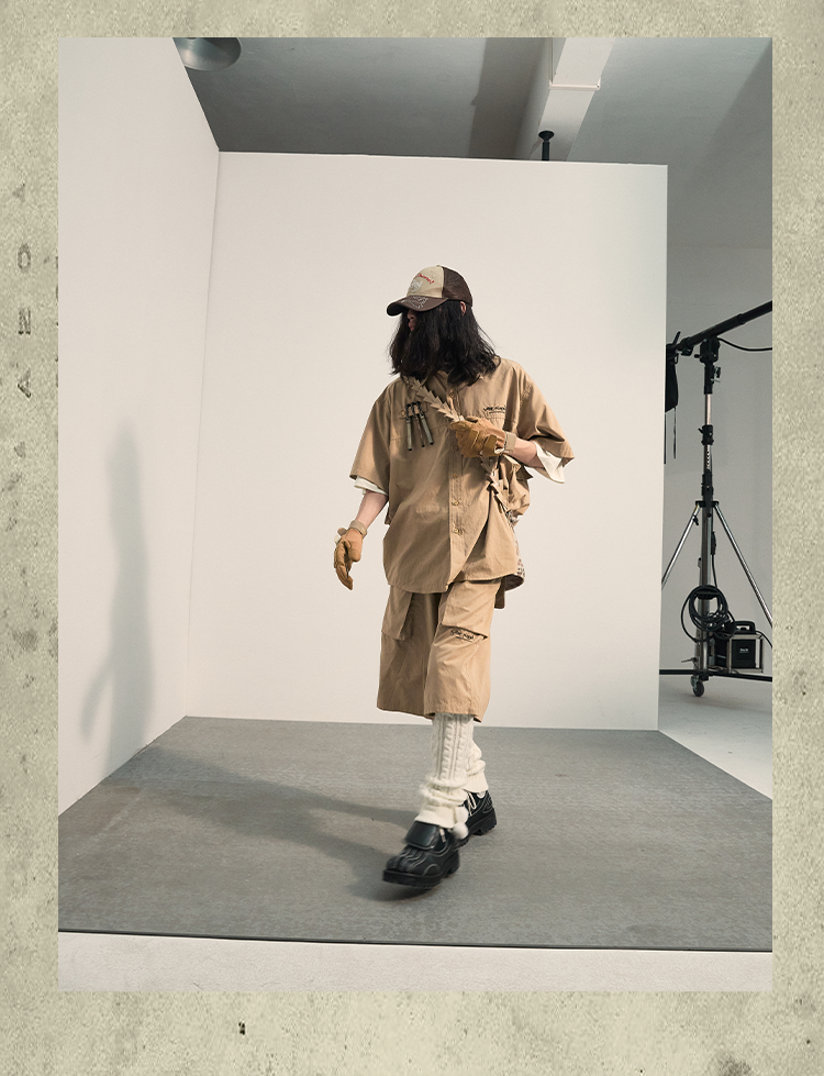 ENSHADOWER隐蔽者国潮新品褶锏武士裙裤男直筒阔腿七分裤宽松裤子