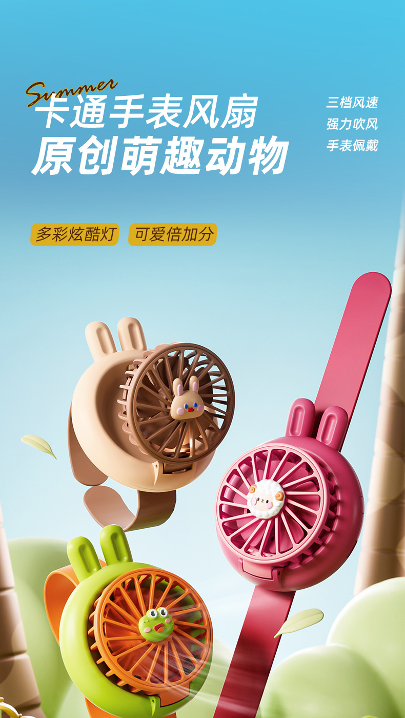 【新品!萌趣手表风扇上线啦!🐰🐉】三档强力风速+炫酷灯效✨,充电款更耐用 戴上它,清凉随行!萌趣动物小风扇手持迷你手表USB充电款桌面礼品便携式
