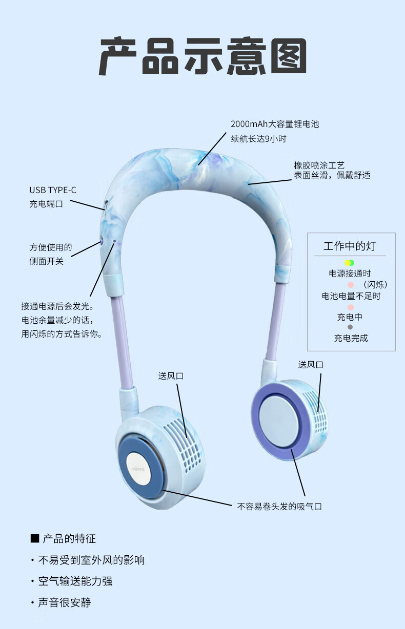 阿宜准无叶挂脖风扇