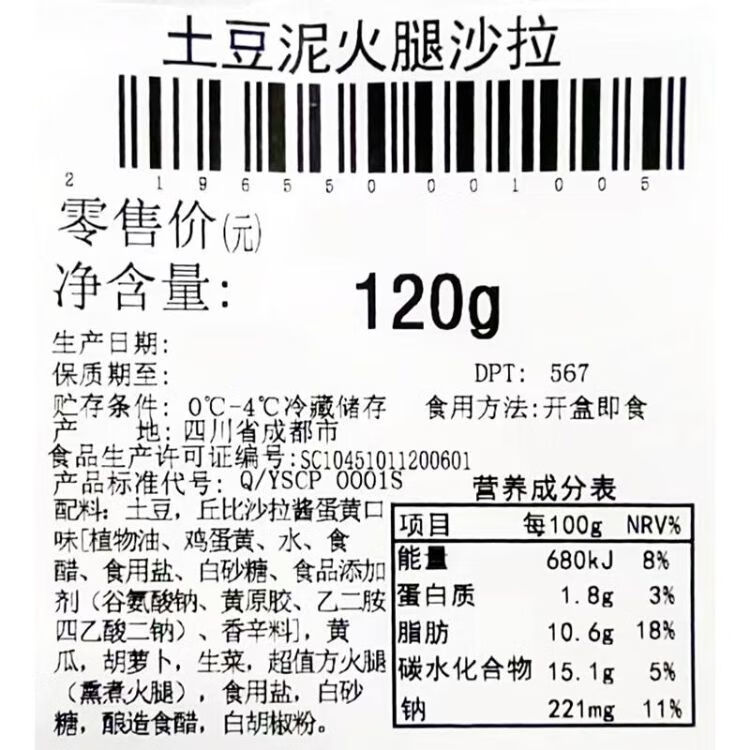 土豆泥火腿沙拉120g/份