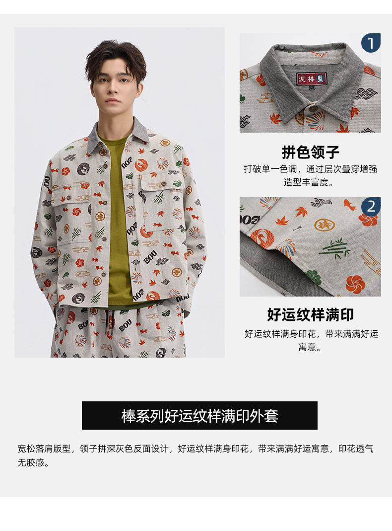 ONIARAI/鬼洗26春季新品棒系列好运纹样满印外套休闲男 N340248
