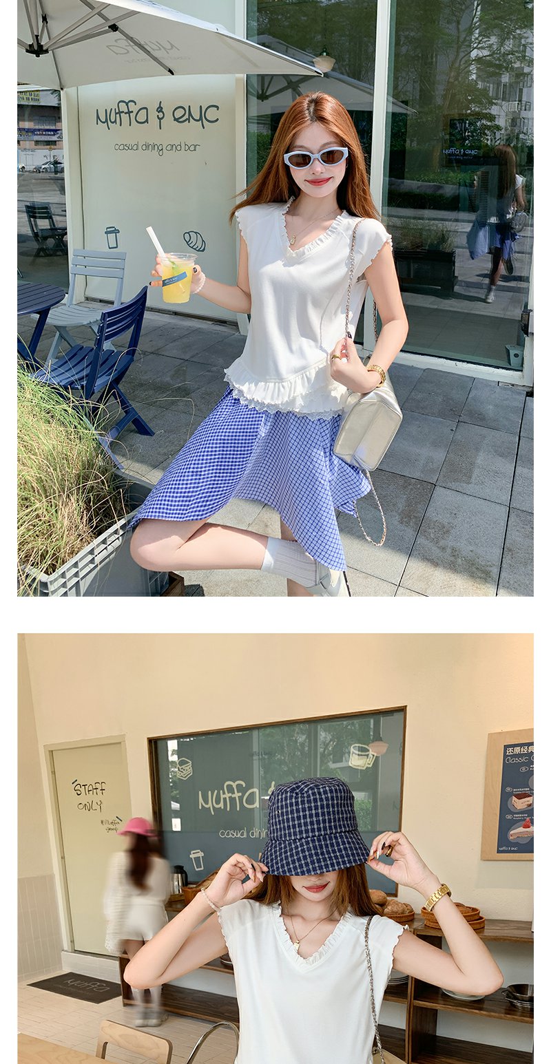 【110元任选2件】最后一波现货!韩系木耳边V领设计T恤