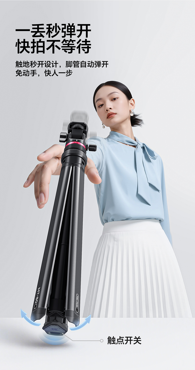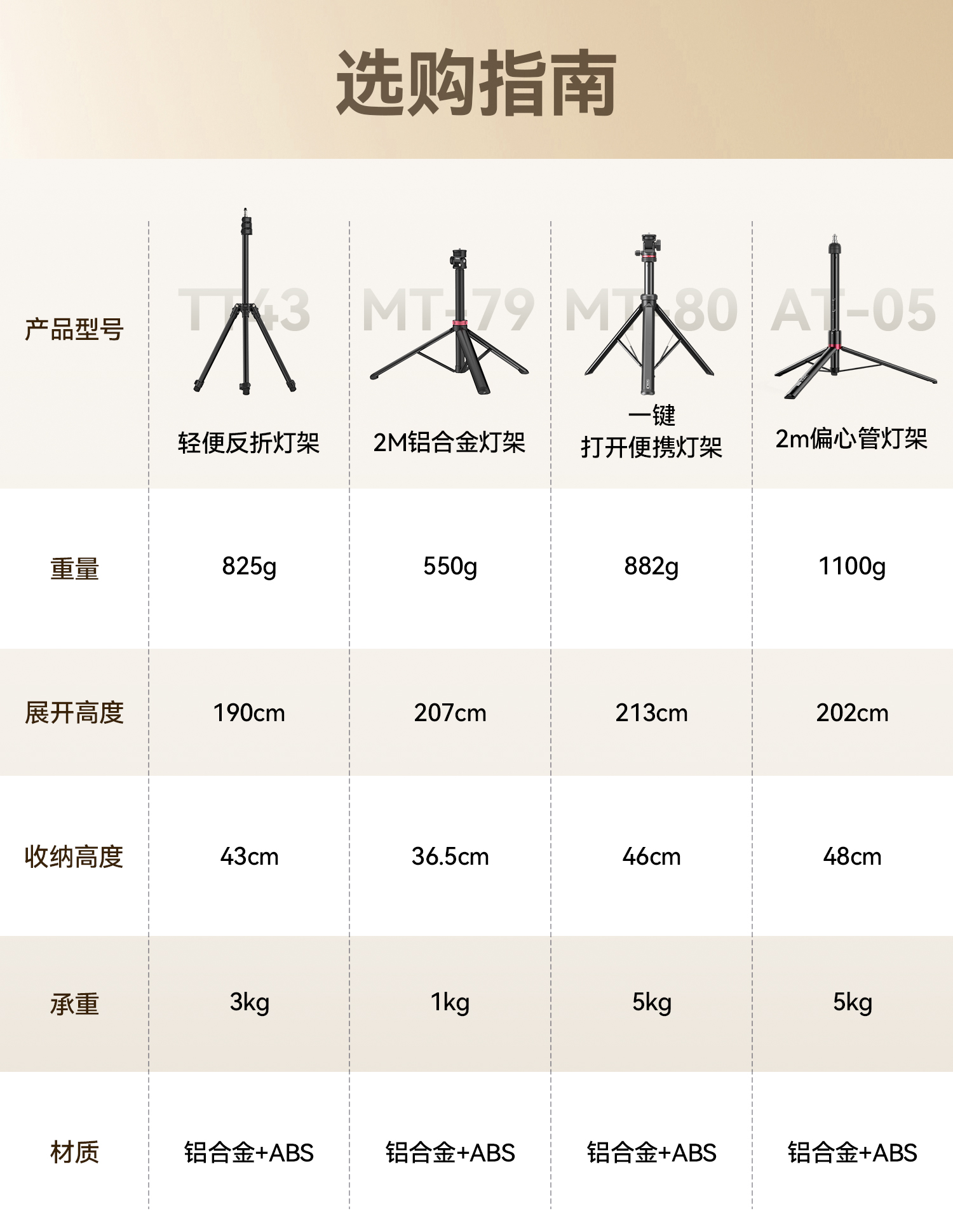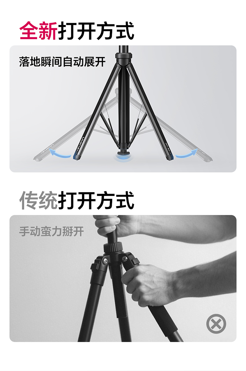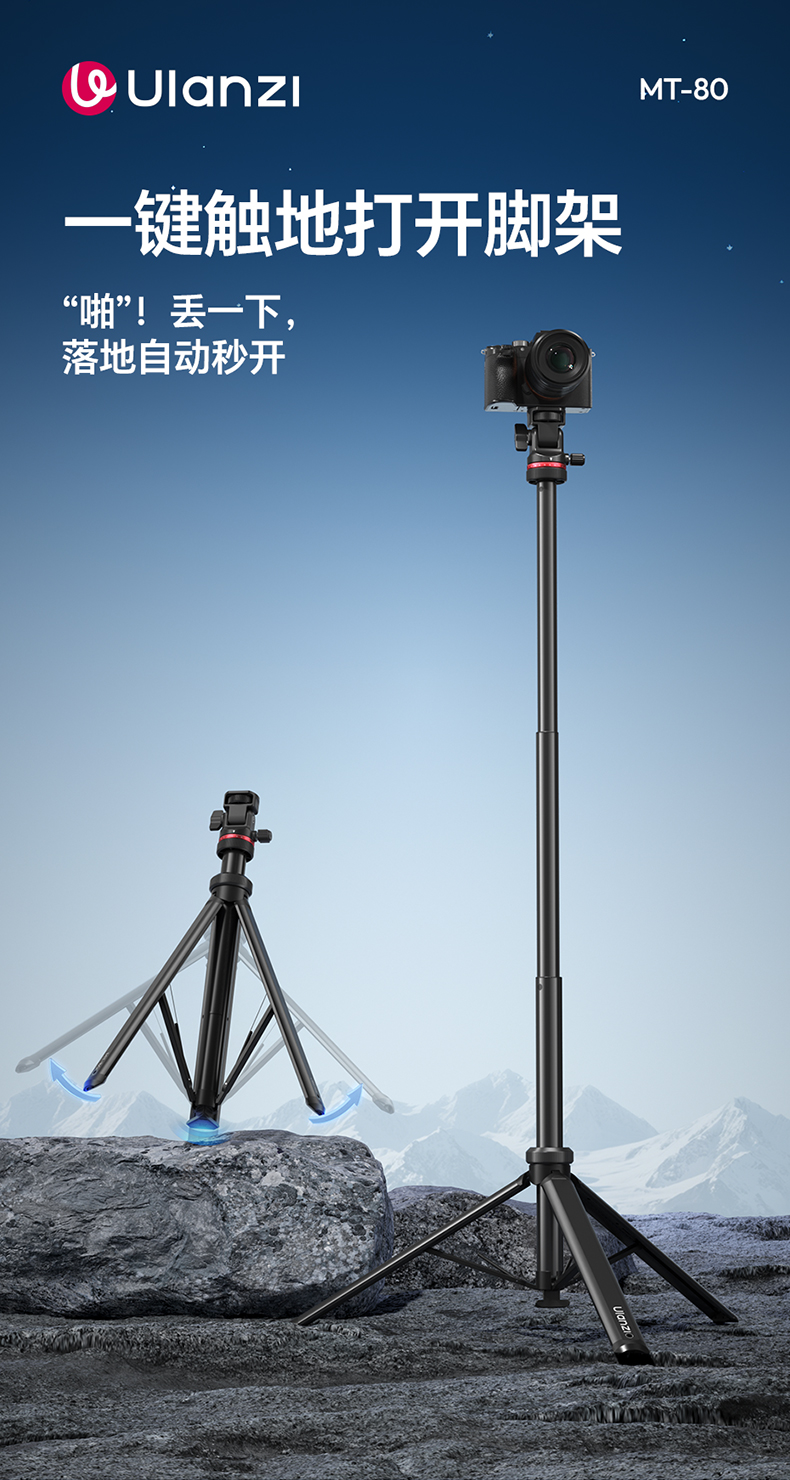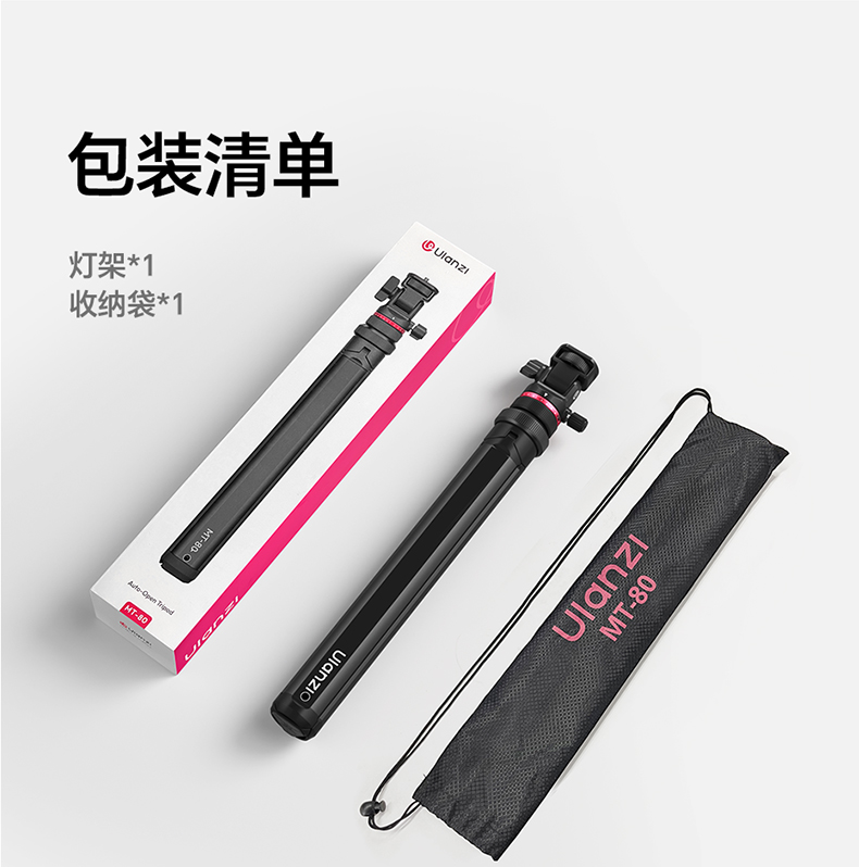 Ulanzi优篮子 MT-80一键打开便携铝合金灯架落地三脚架补光灯配件支架手机相机微单拍照摄影金属自拍杆三角架