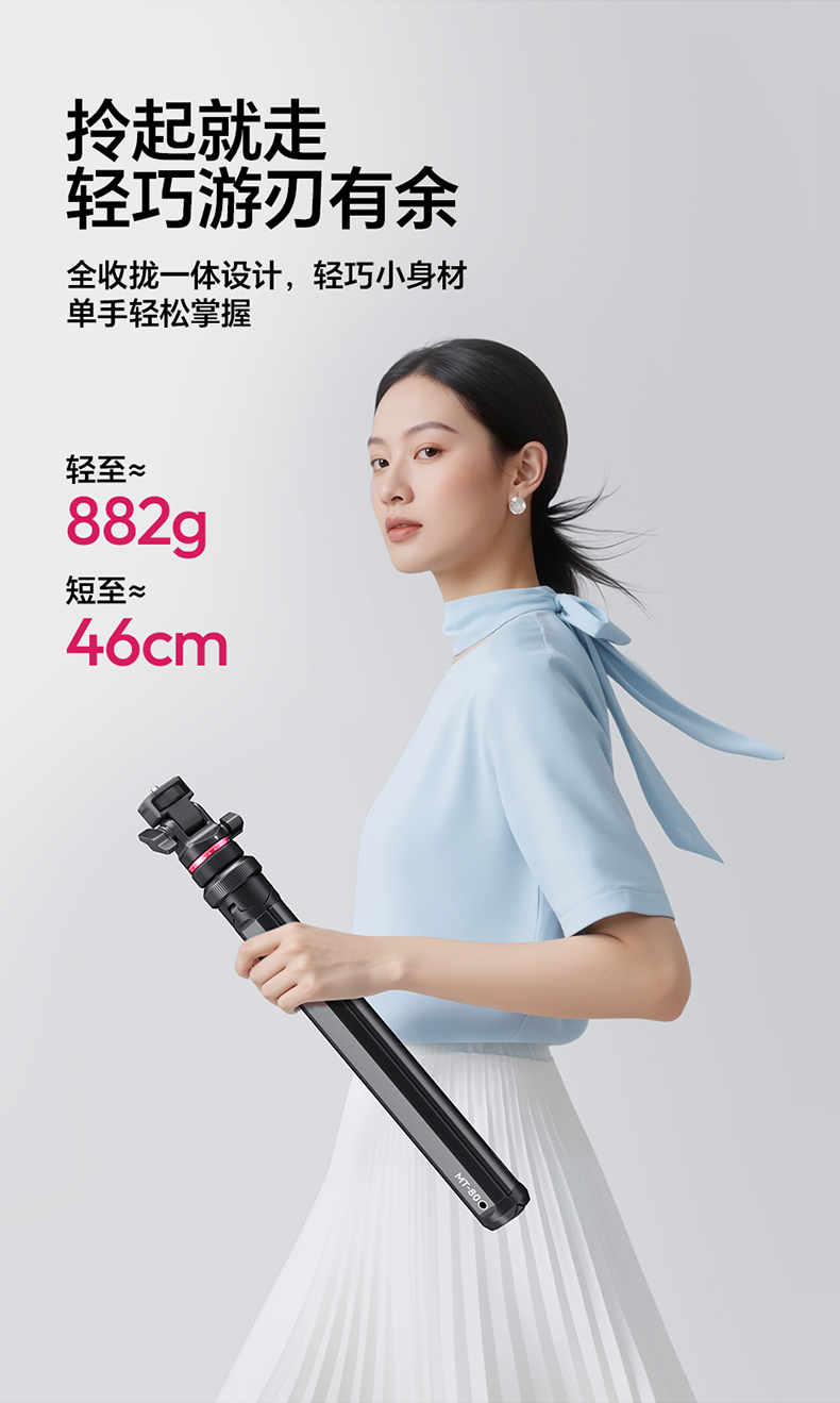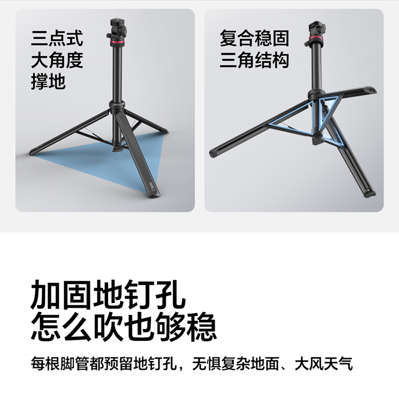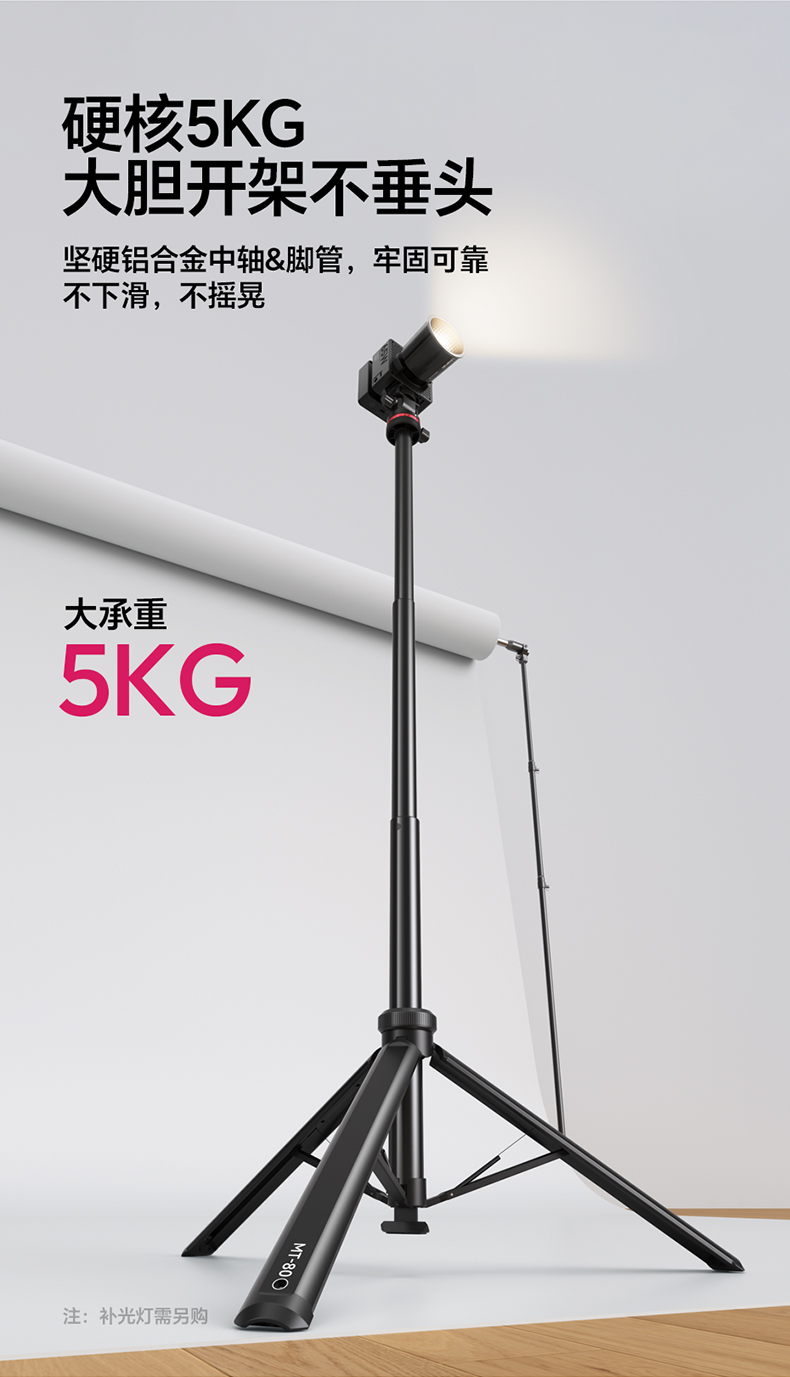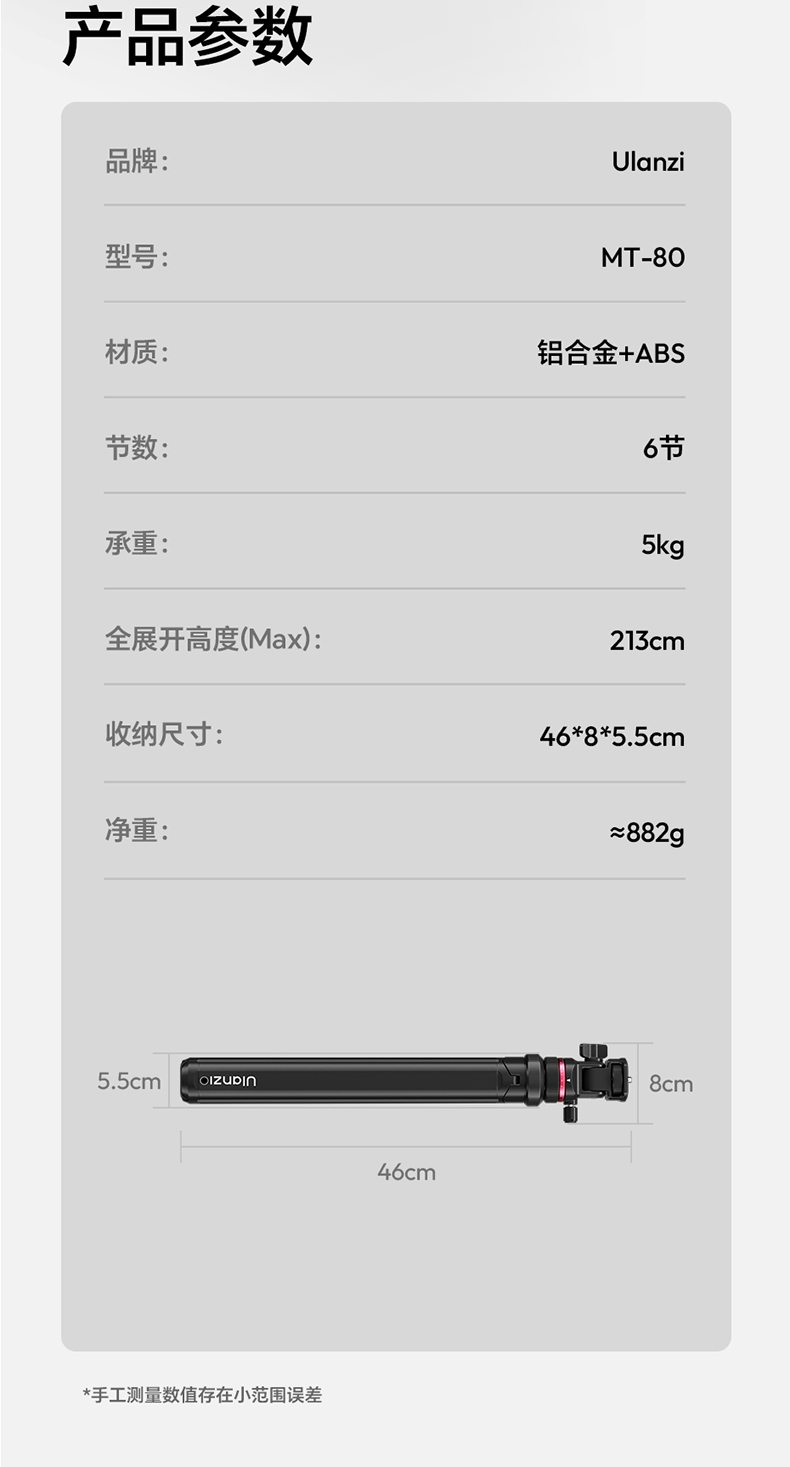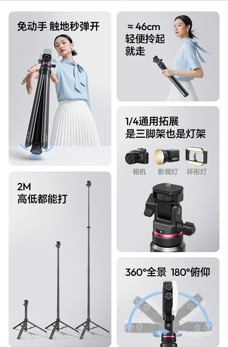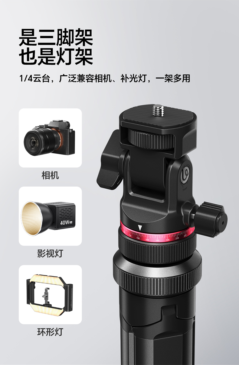 Ulanzi优篮子 MT-80一键打开便携铝合金灯架落地三脚架补光灯配件支架手机相机微单拍照摄影金属自拍杆三角架