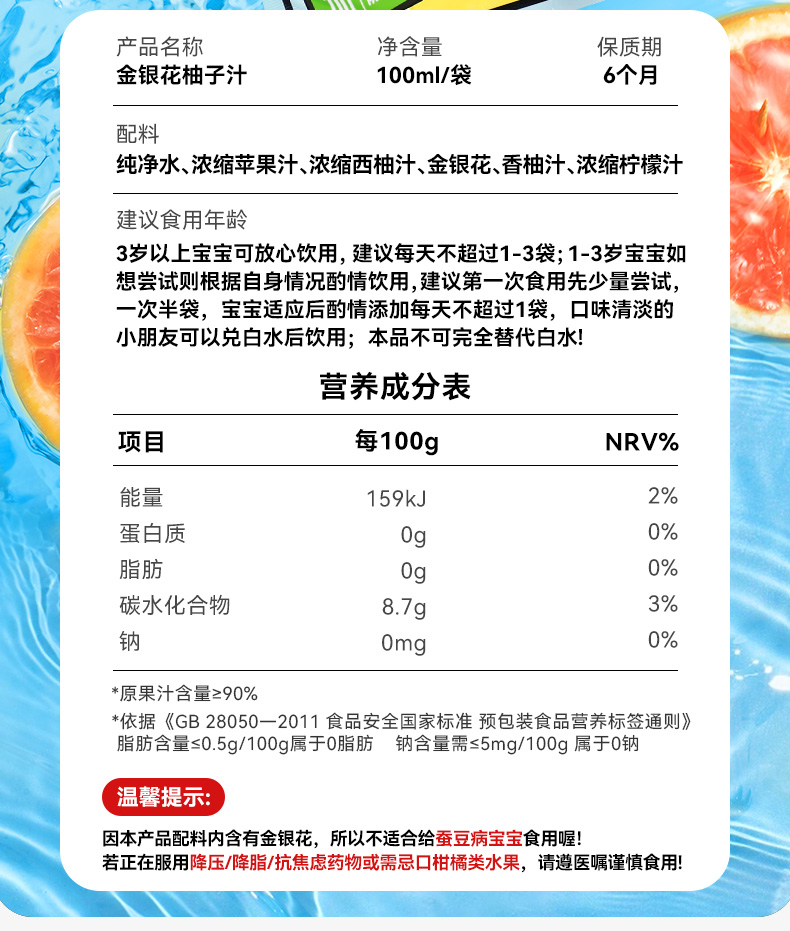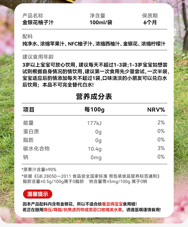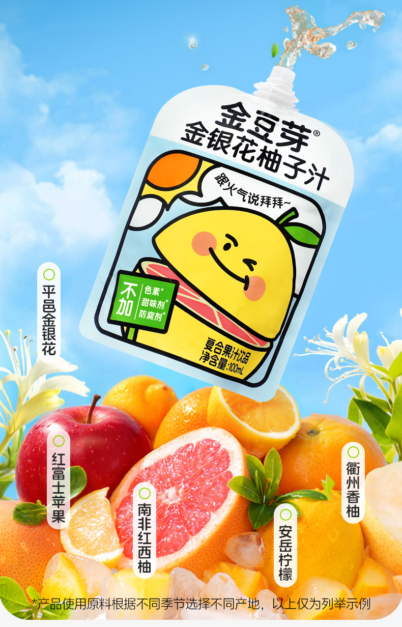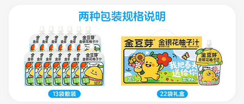【春日礼盒 新品上新】金银花柚子汁100ML/袋秋季预防火火健康果汁饮品