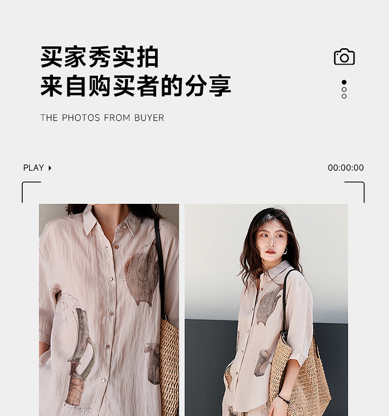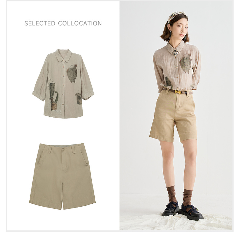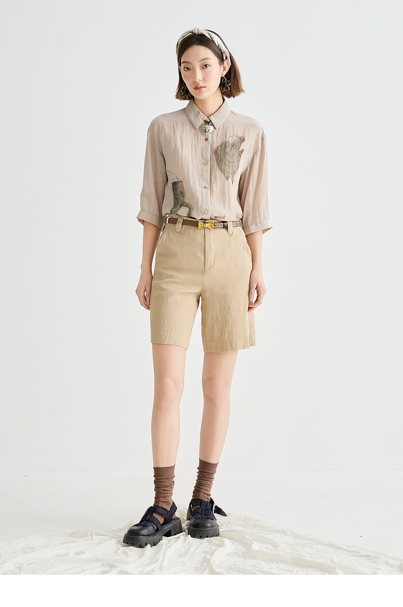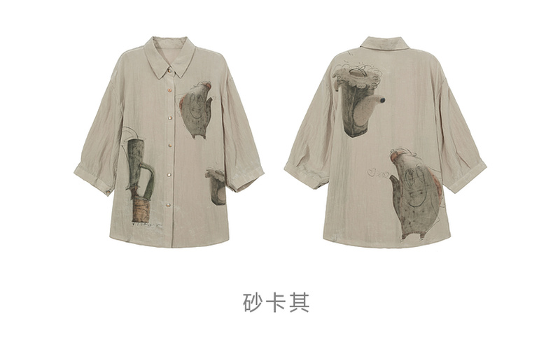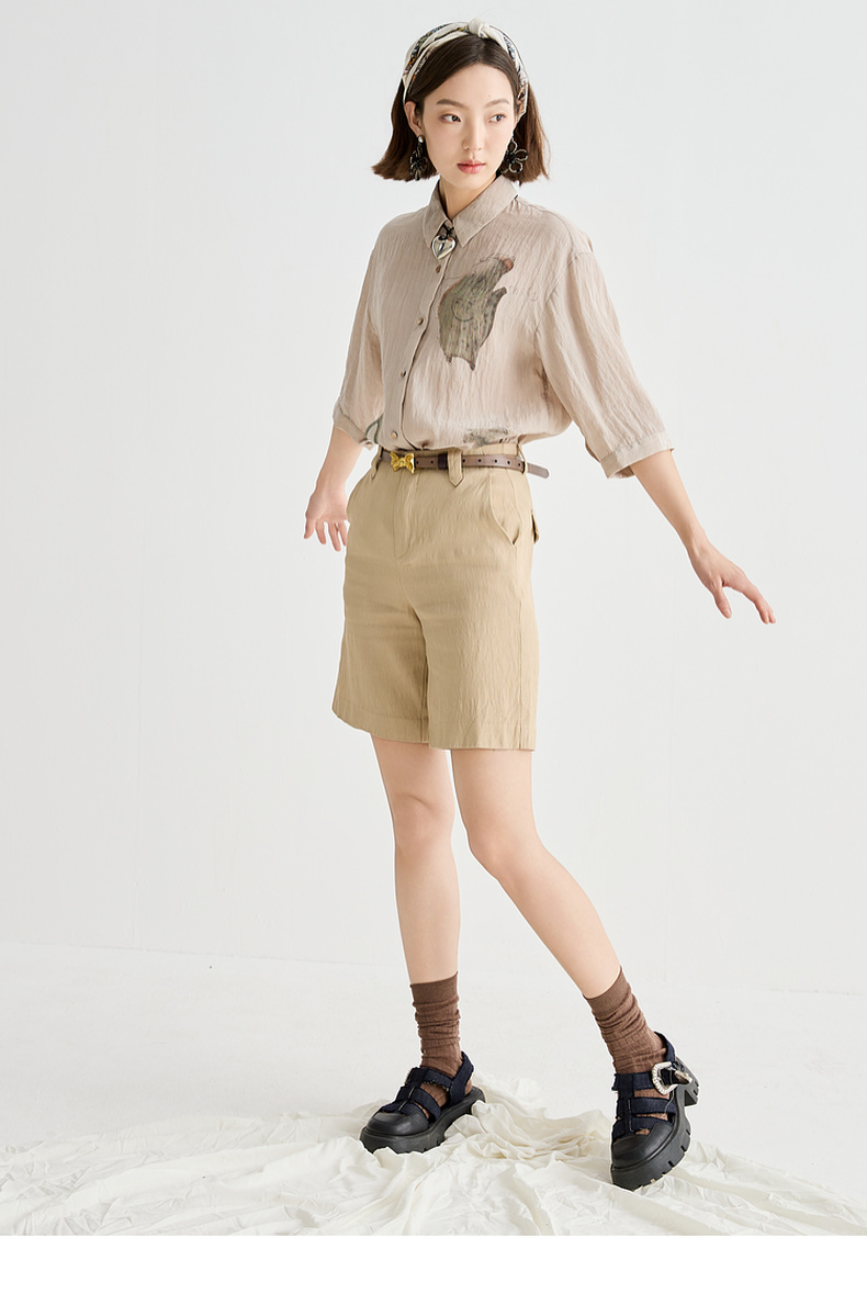谜底衬衫分袖女2025夏季新品复古风通勤宽松H型中长衬衣252MC0682